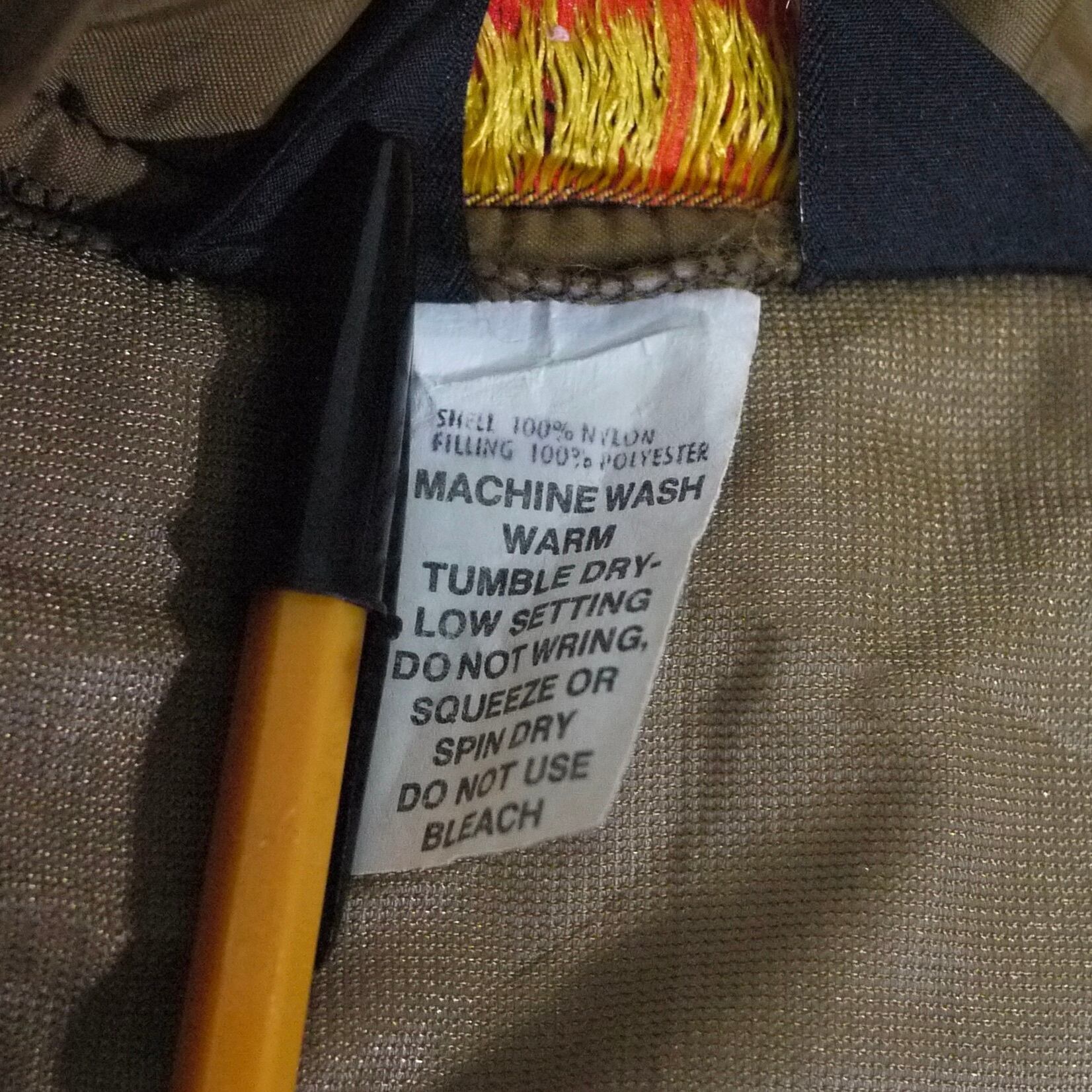 アメリカ製。シェルはナイロン100%、中綿はポリエステル100%。