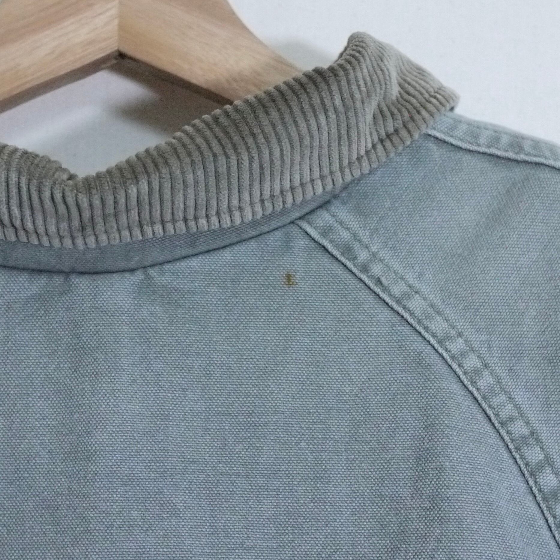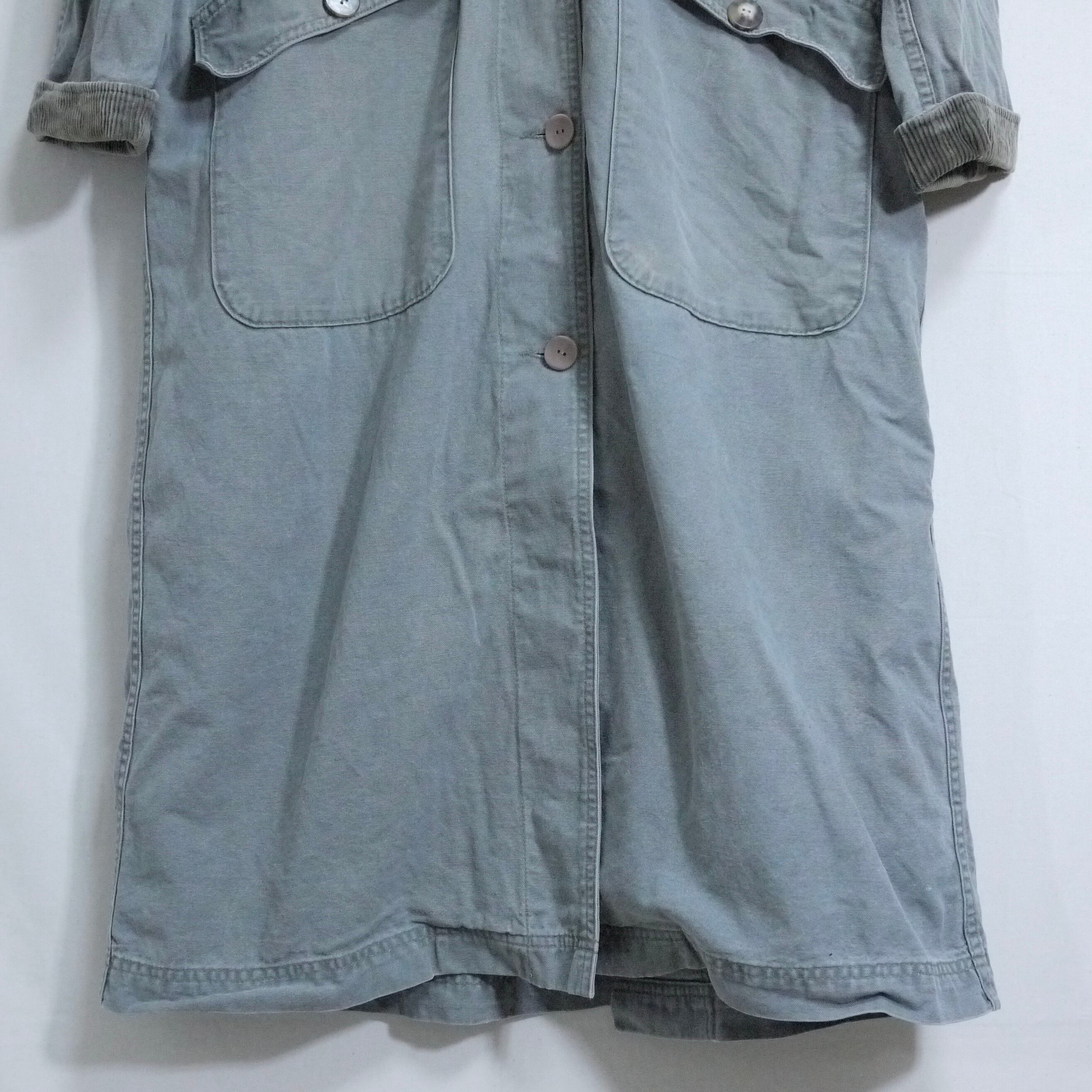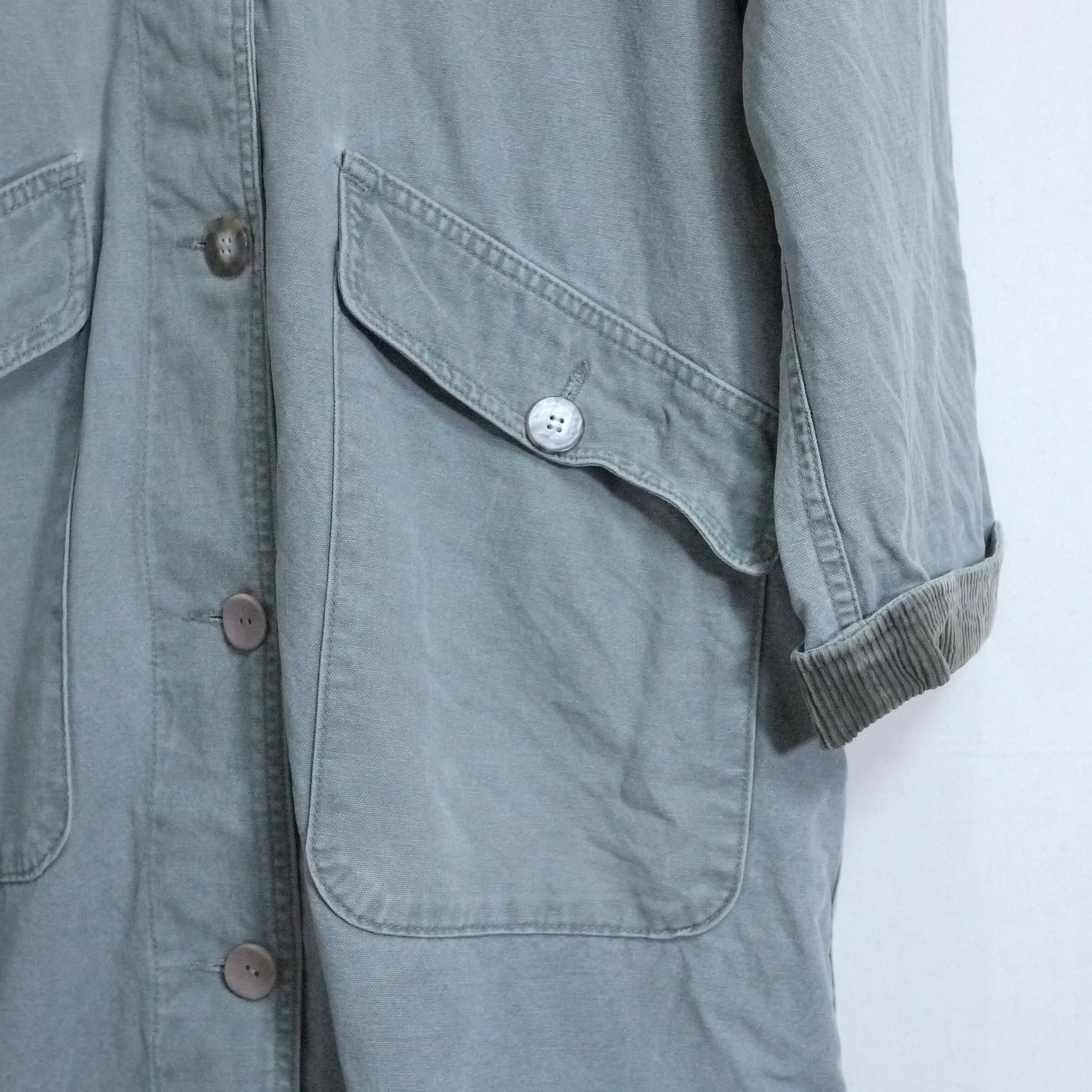 ダック地に襟や袖口のコーデュロイ地の切り返えデザインなどハンティングジャケットのディテールが残っていますが、タウンユースしやすいデザインにアップデートされています。