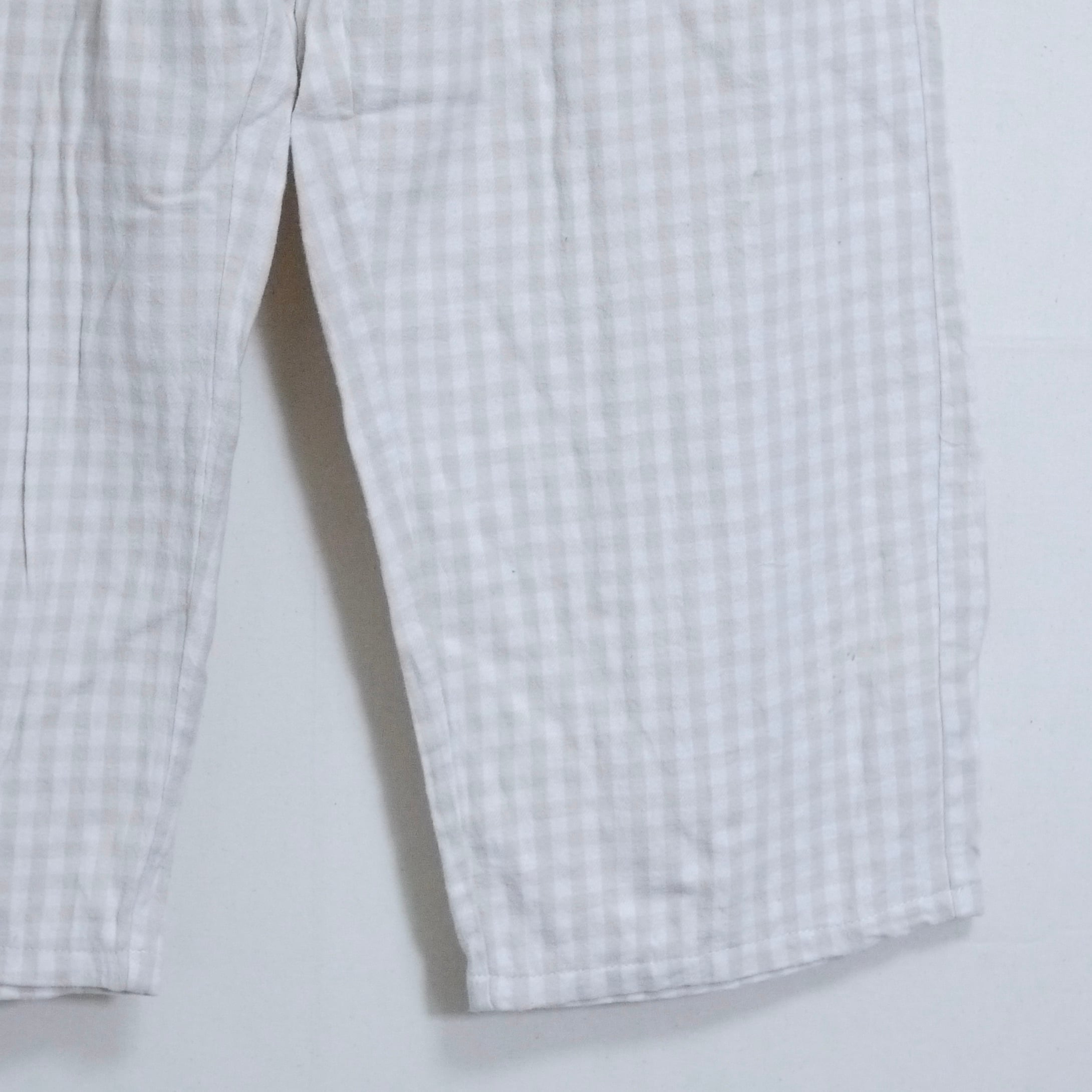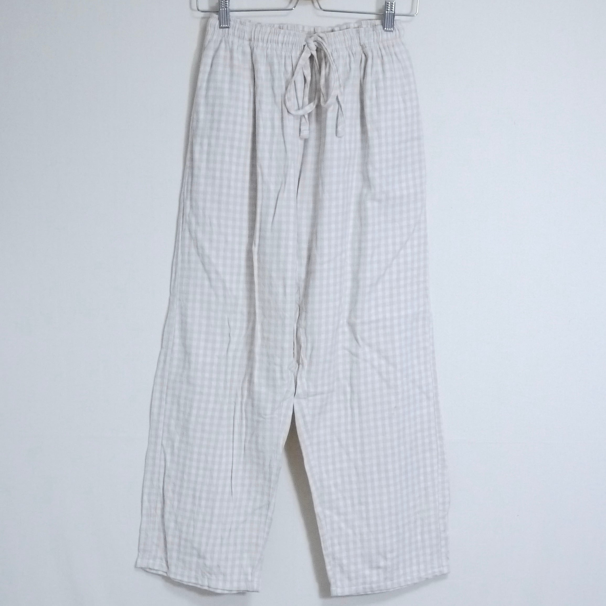 ライトベージュ×ホワイトのチェック柄パジャマパンツ。