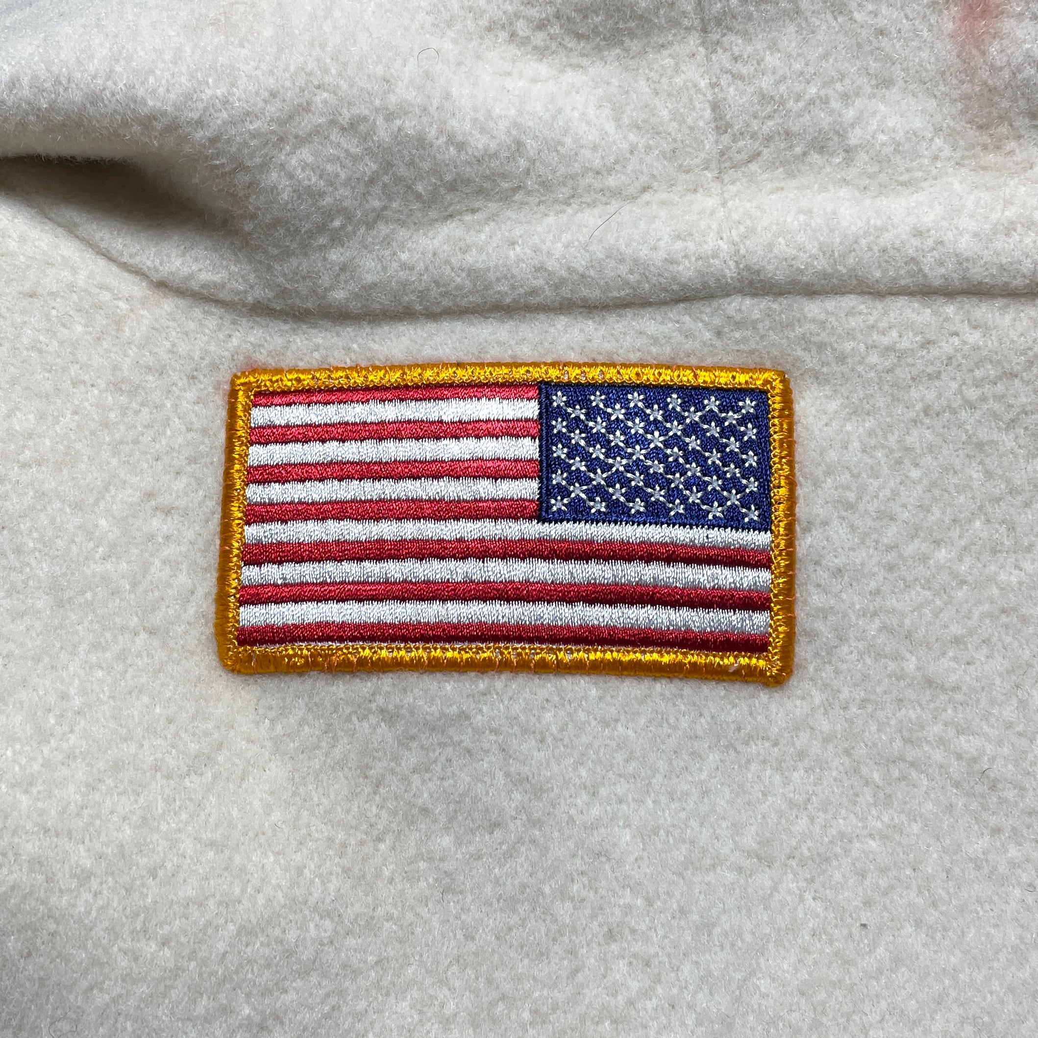 状態は、右袖にスレ。フードに薄ら汚れ。バックネックにリペアのワッペンが付いていますがフードで隠れます。その他、全体的に経年による使用感は多少ありますが、着用に問題はありません。