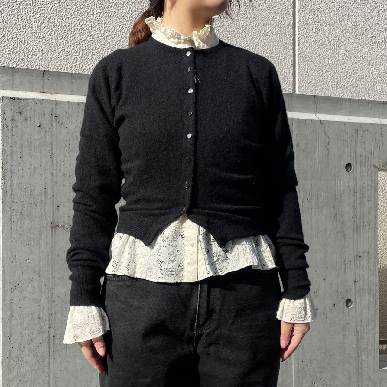 ブラックカラーのニットカーディガン。