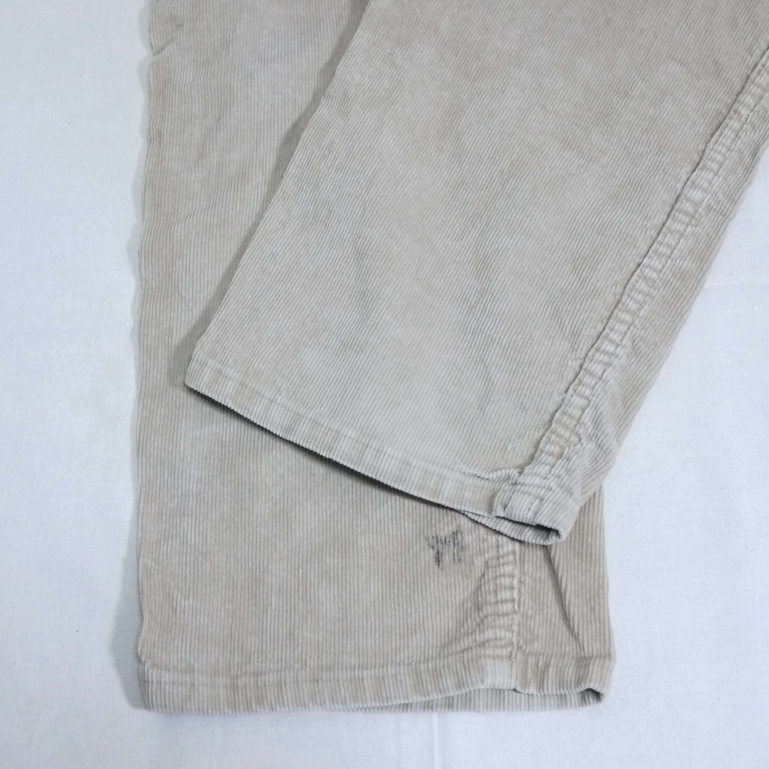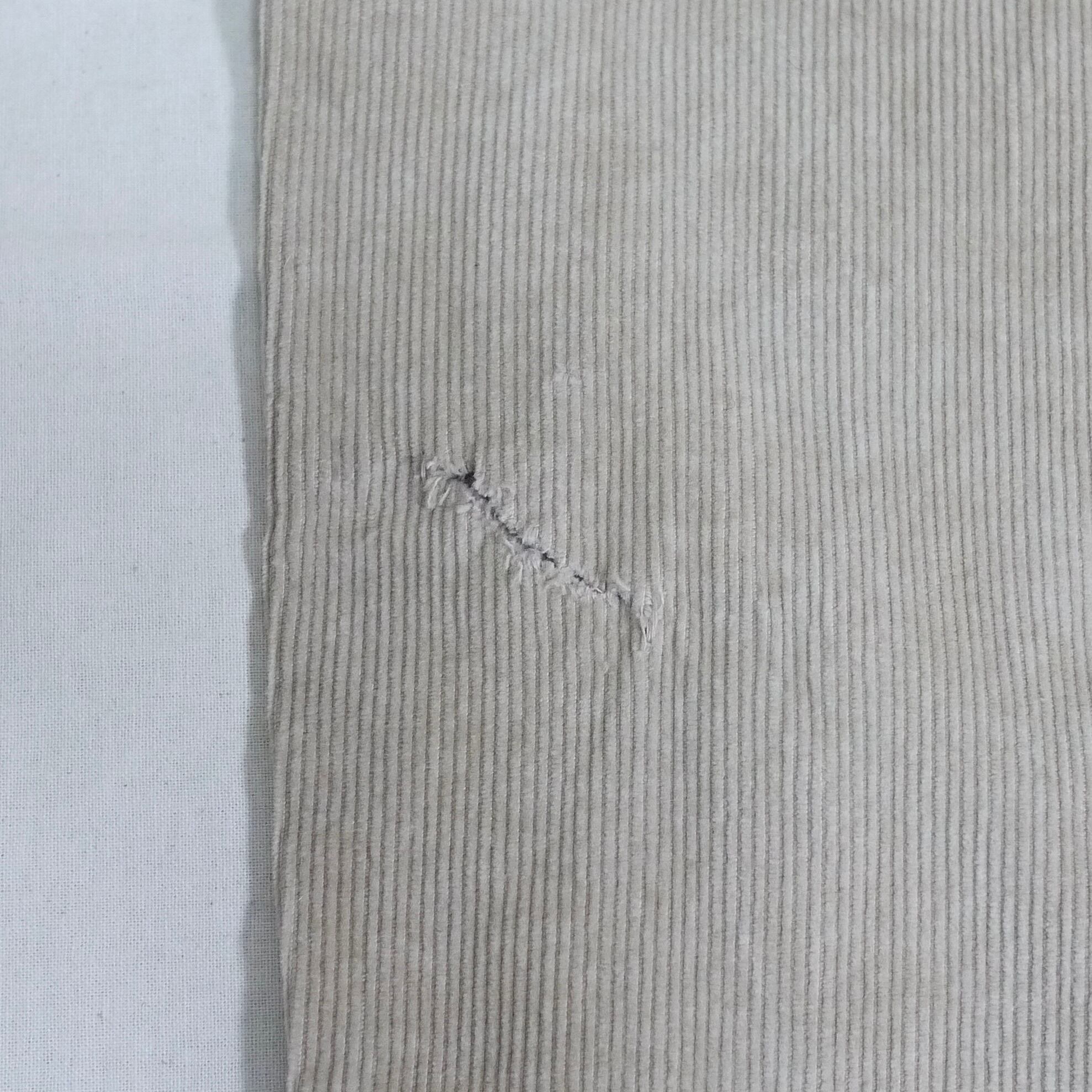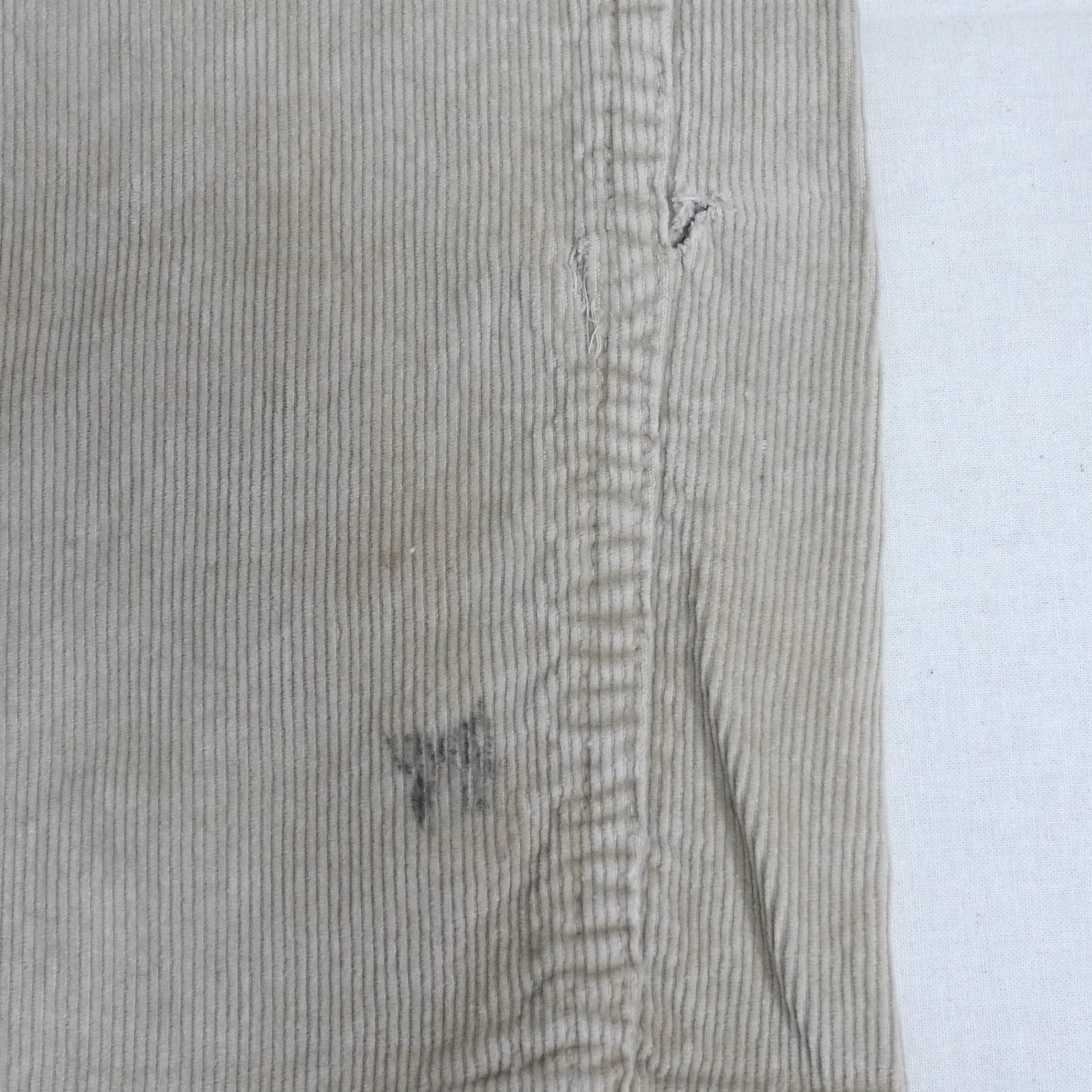 状態は、胸ポケットのスナップボタンの片側が生地から外れています。左足の裾付近に汚れとダメージ。その他、全体的にスレなどの経年による使用感は多少ありますが、目立ったダメージはなく着用に問題はありません。