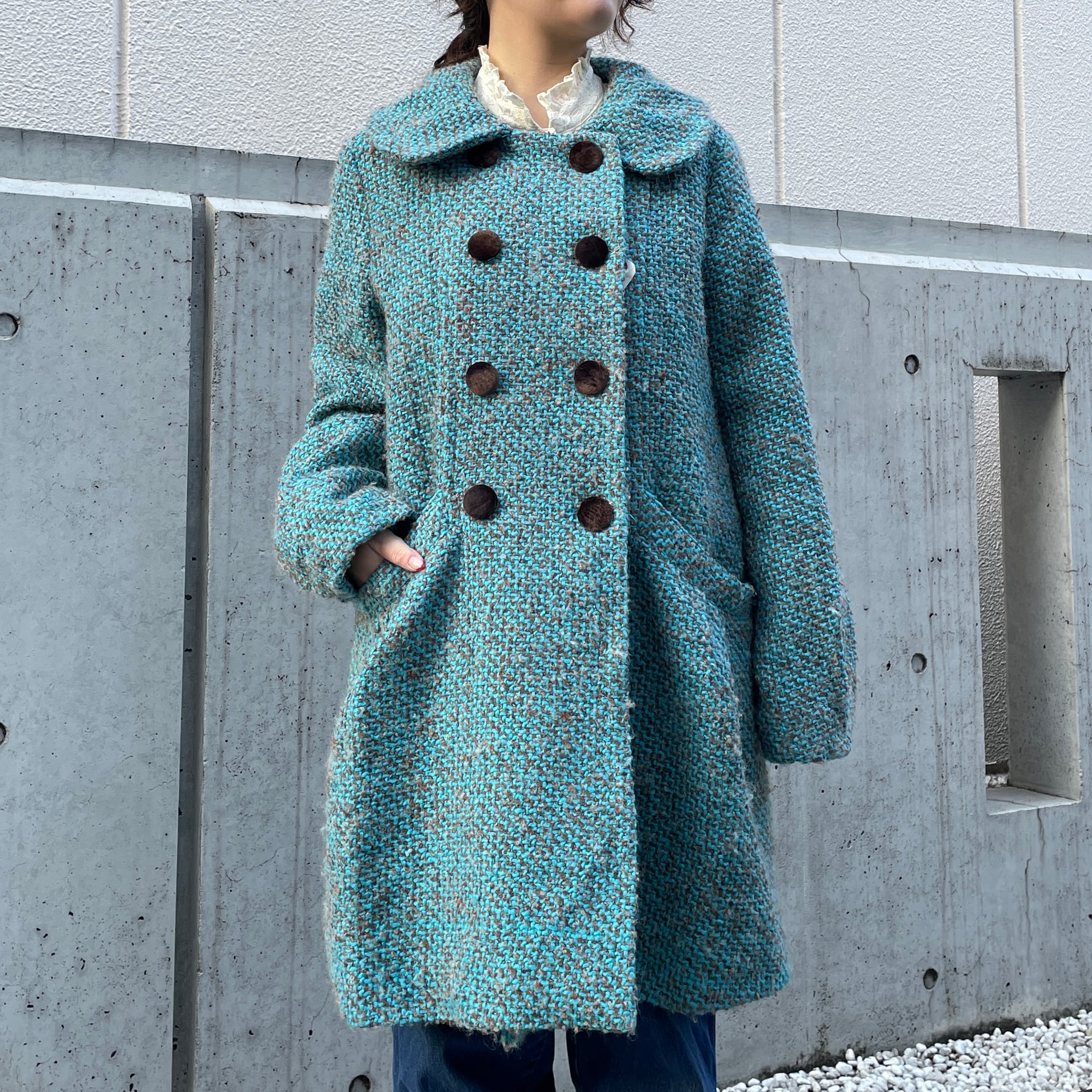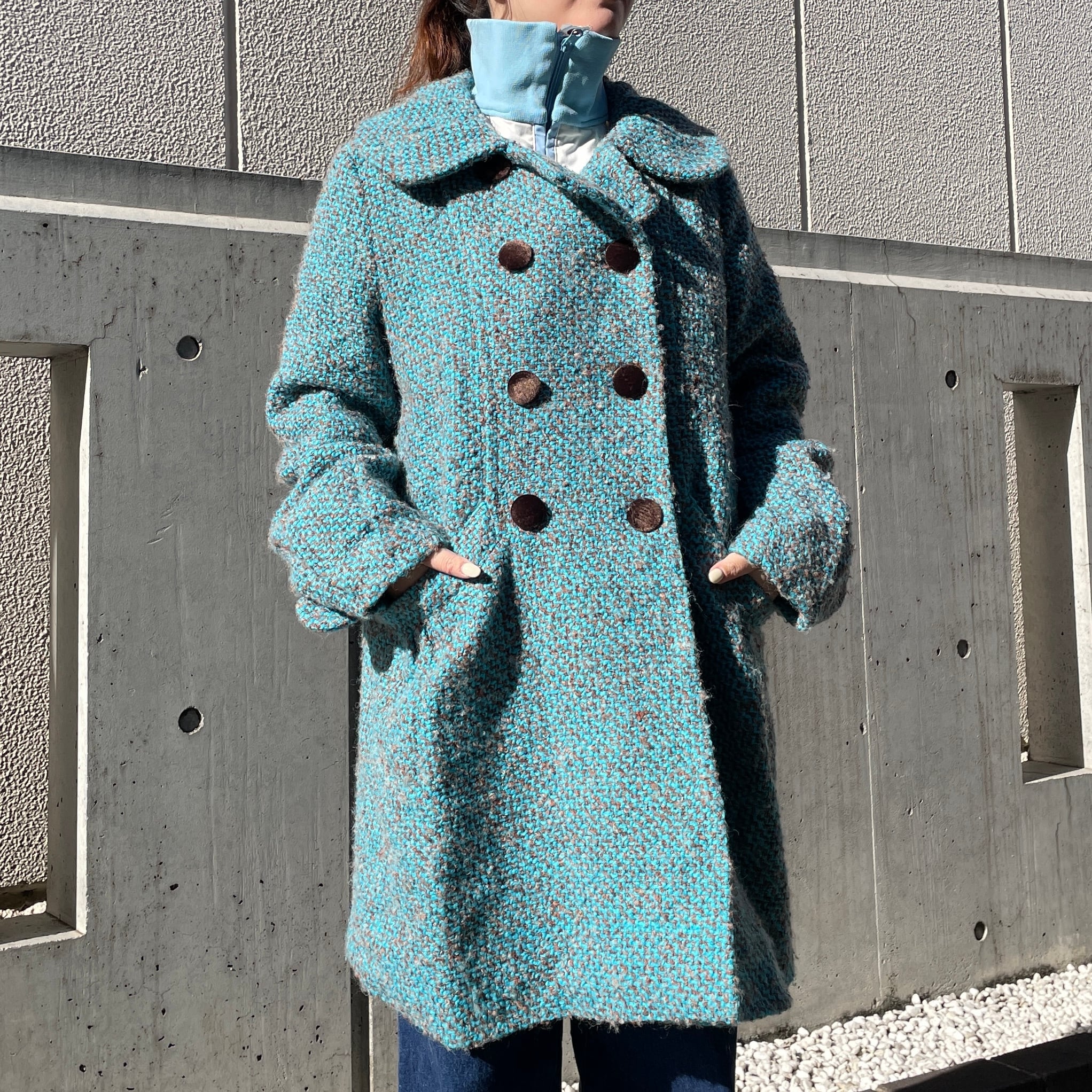 ブルーカラーのウールコート。