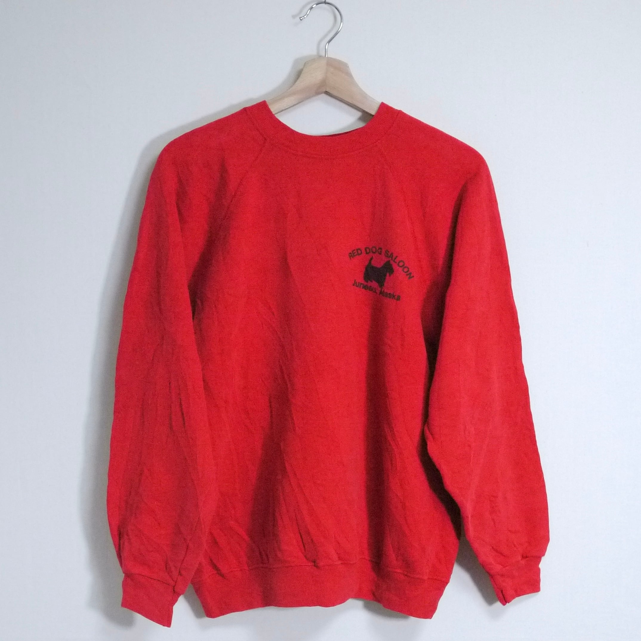 レッドカラーのスウェット。