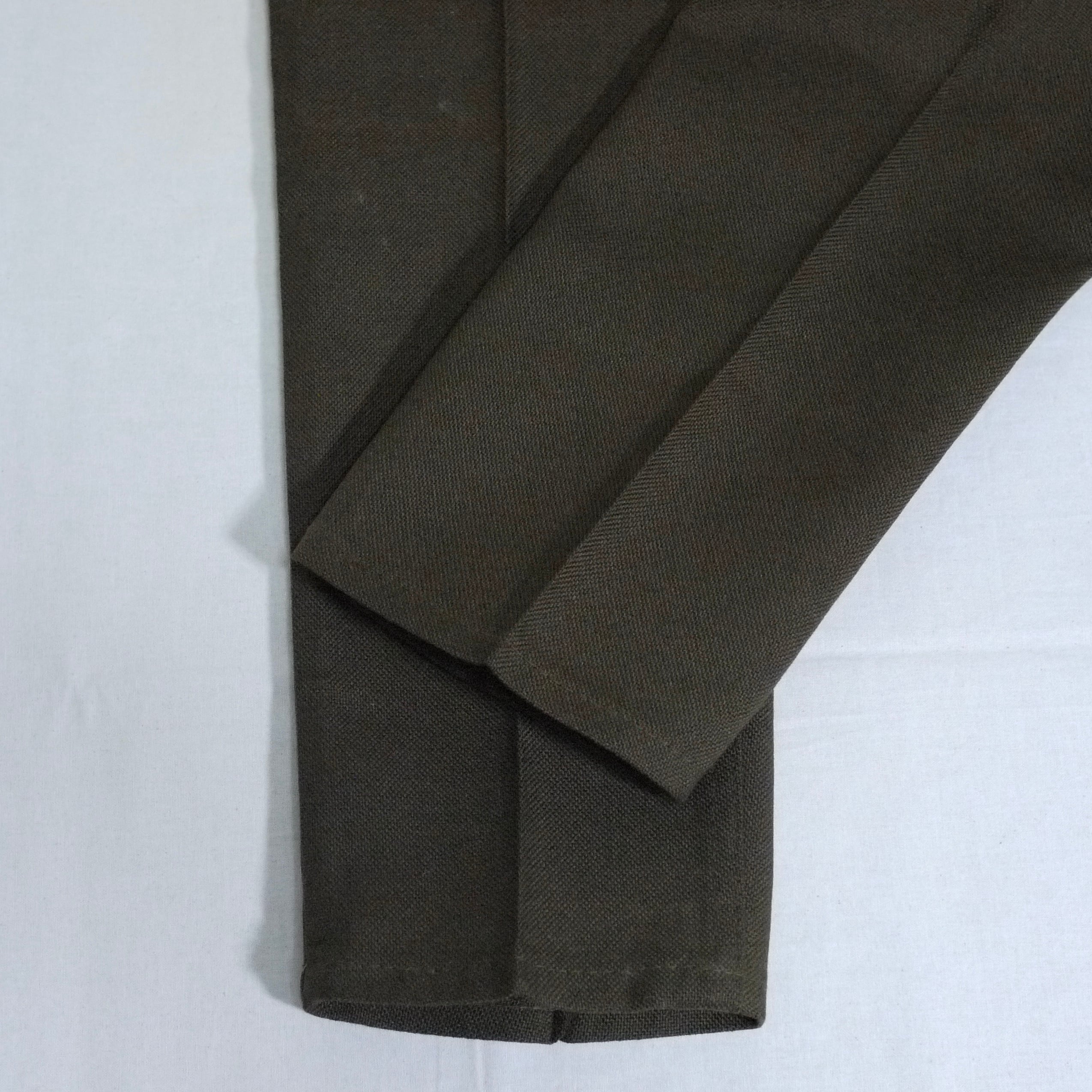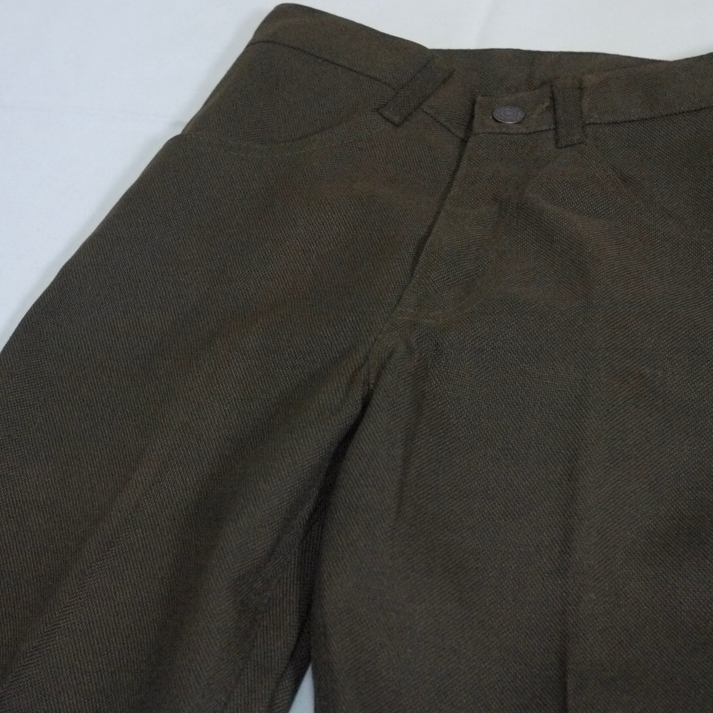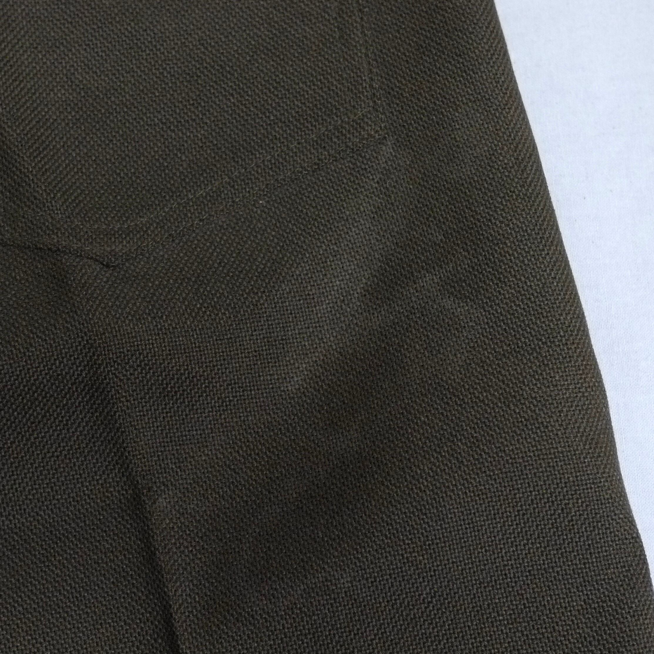 状態は、右のヒップポケットの下辺りと右膝付近に保管時の汚れ。前ひだに薄ら折りヤケ。その他、保管時の多少の使用感はありますが、目立った汚れやダメージはなく着用に問題はありません。