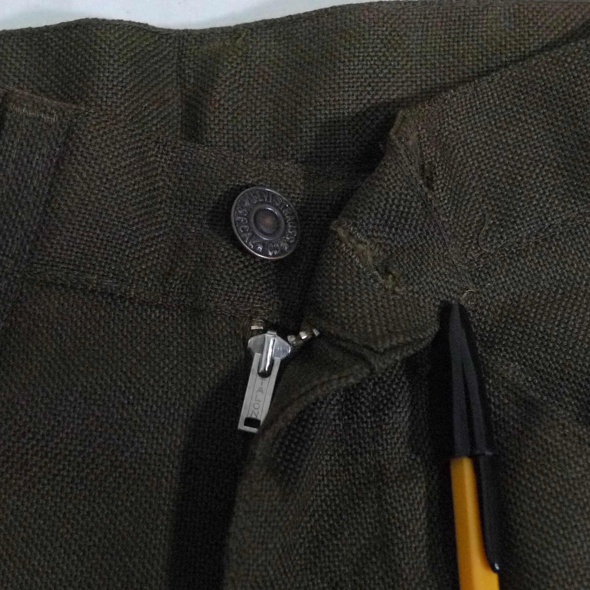 ポリエステル50%、コットン50%。Big E。ジッパーはTALON。Dead Stock。
