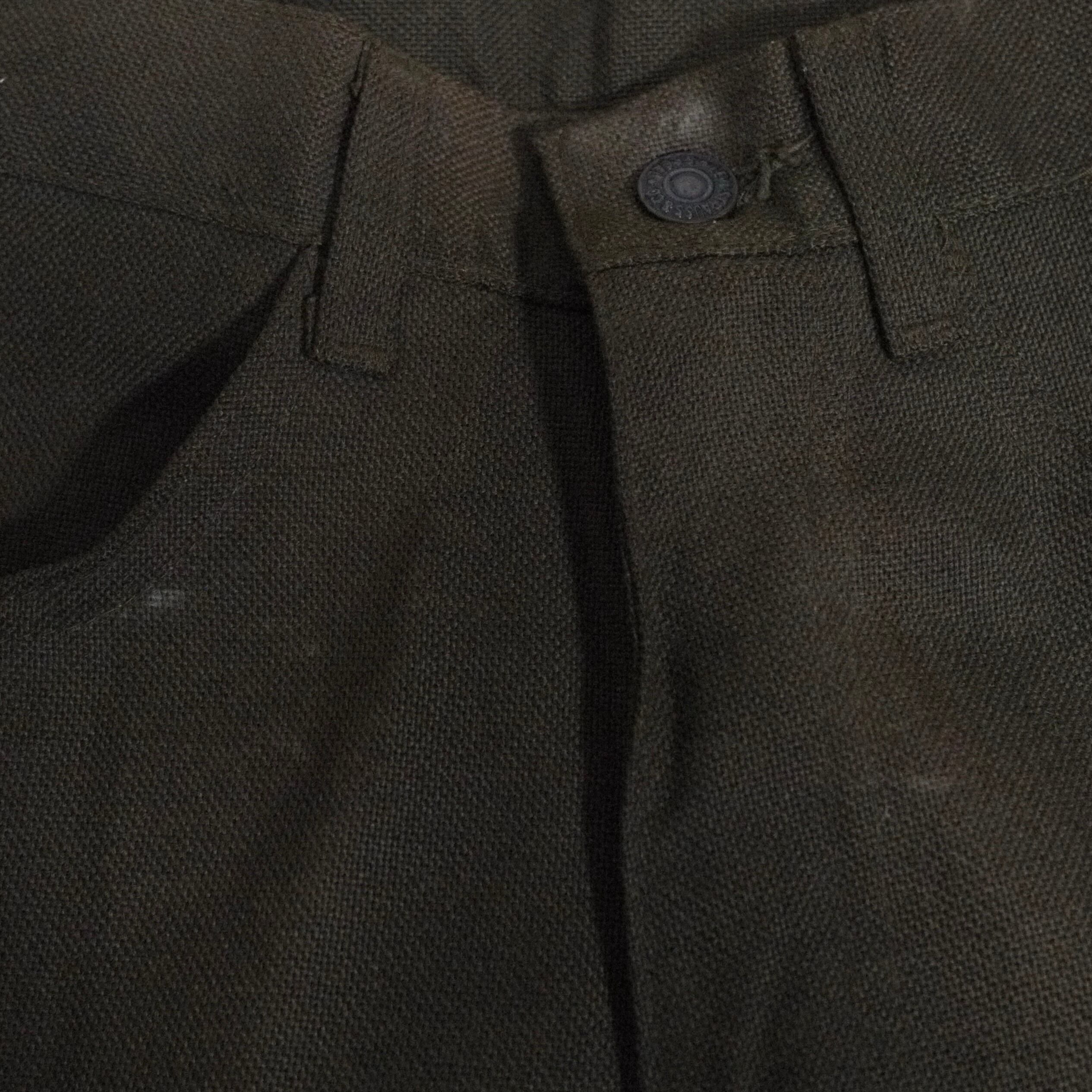 状態は、フロントボタン周辺と右のポケット付近に保管時の汚れ。前ひだと右のヒップの下辺りに薄ら折りヤケ。その他、保管時の多少の使用感はありますが、目立った汚れやダメージはなく着用に問題はありません。