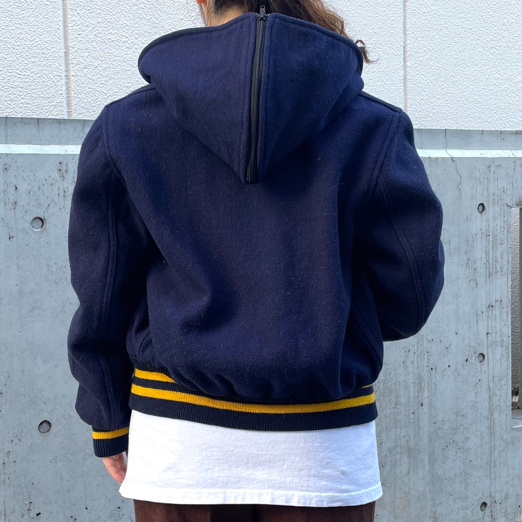 ネイビーカラーのアワードジャケット。