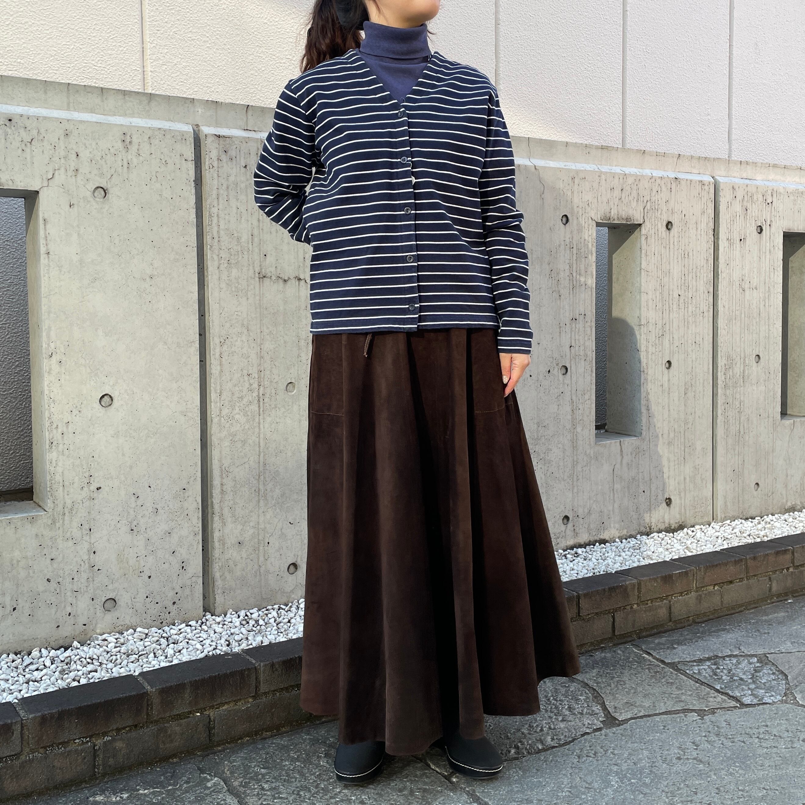 ネイビー×ホワイトのボーダー柄スウェットカーディガン。