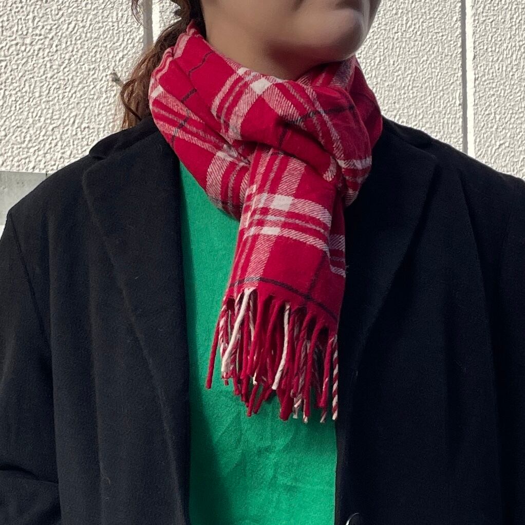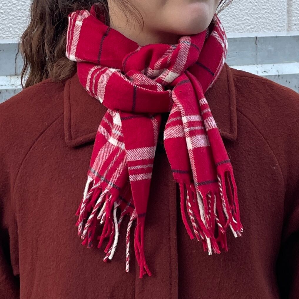 レッドカラーがベースのチェック柄マフラー。