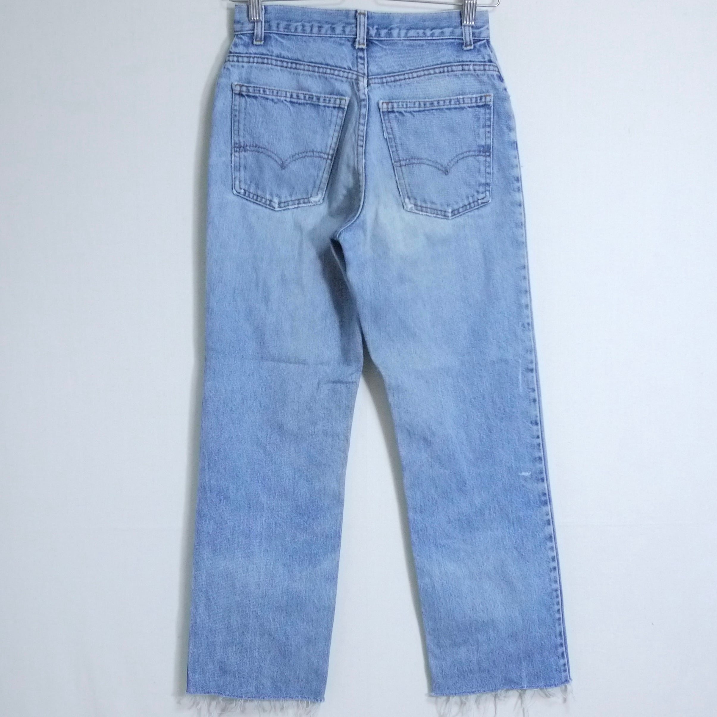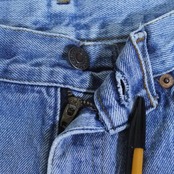 パッチ欠損、内タグが擦れて読み取れないため詳細不明。恐らくアメリカ製で素材はコットン。タブは白タブが切り取られています。ブランド刻印入りのジッパー。収縮率3%の記載のある内タグのため70年代後半から80年代前半頃のアイテムと思われます。