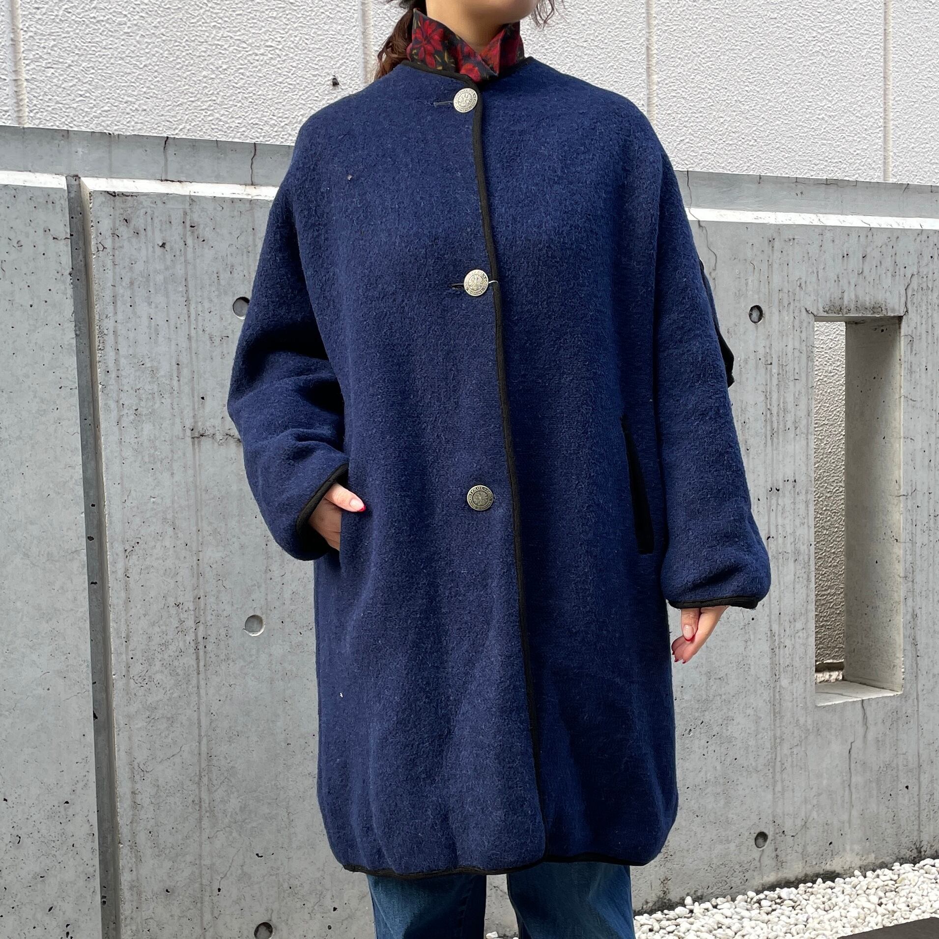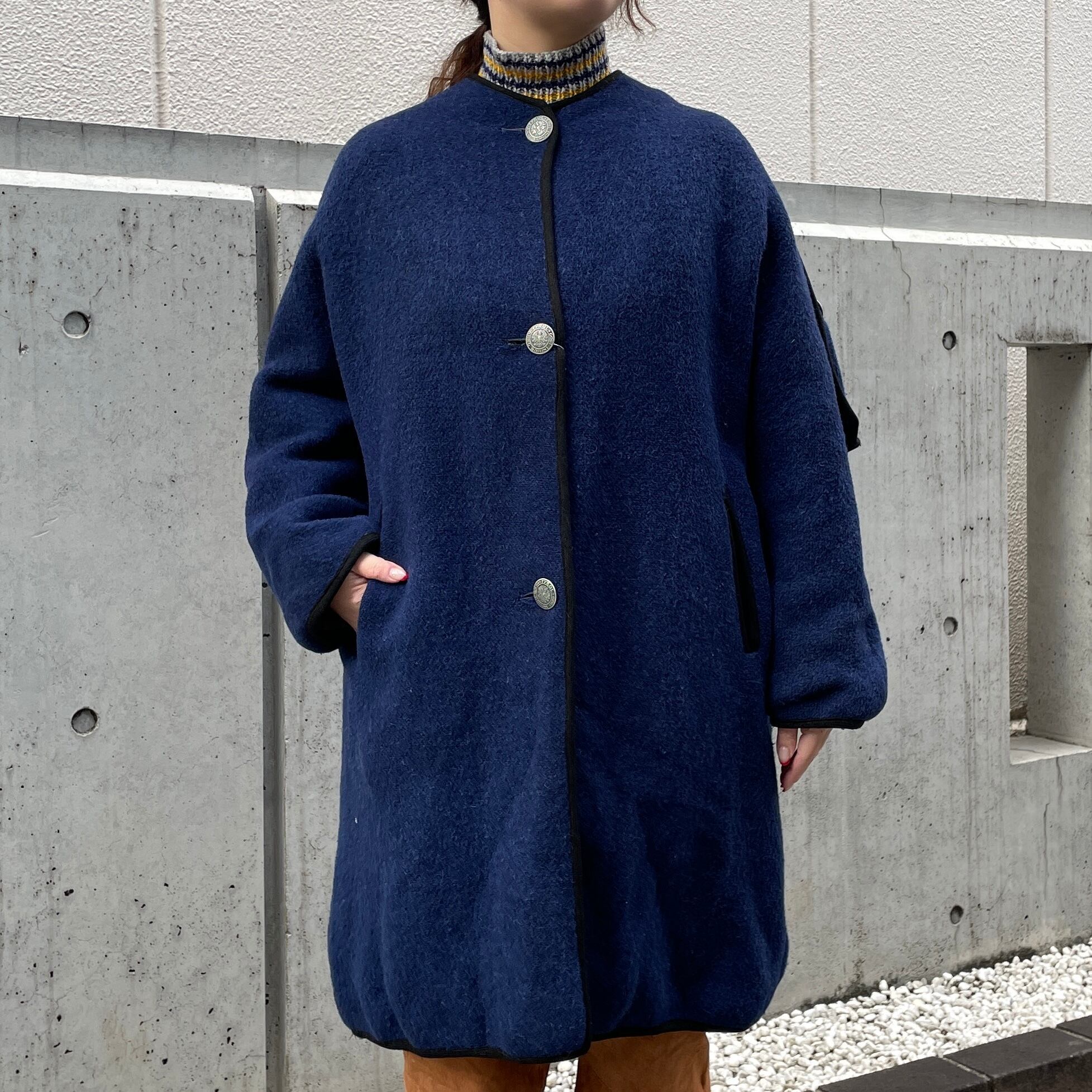 ネイビーカラーのウールコート。