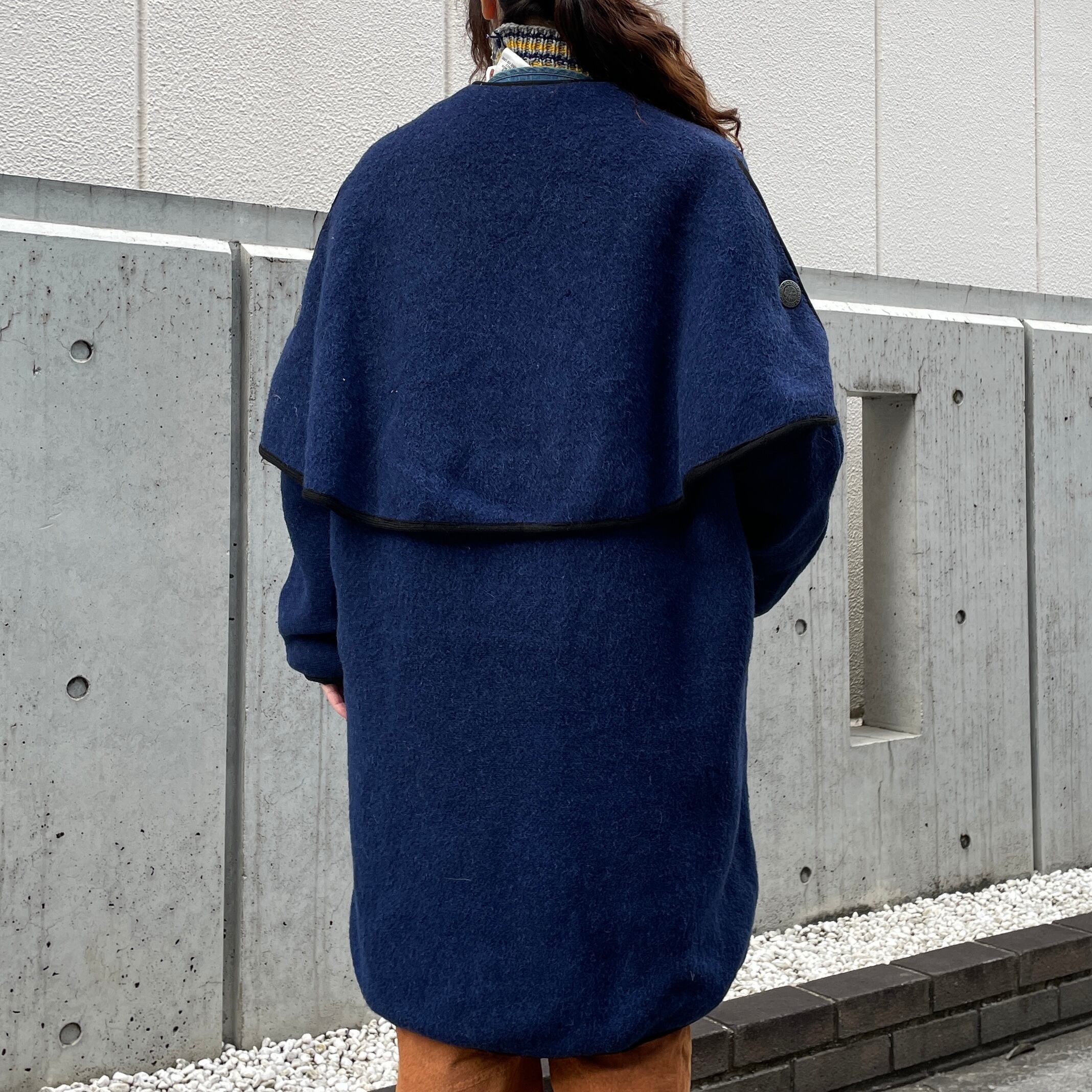 腰まで隠れる着丈でしっかりとしたウール地の古いアイテムのため着用時に多少の重さは感じます。