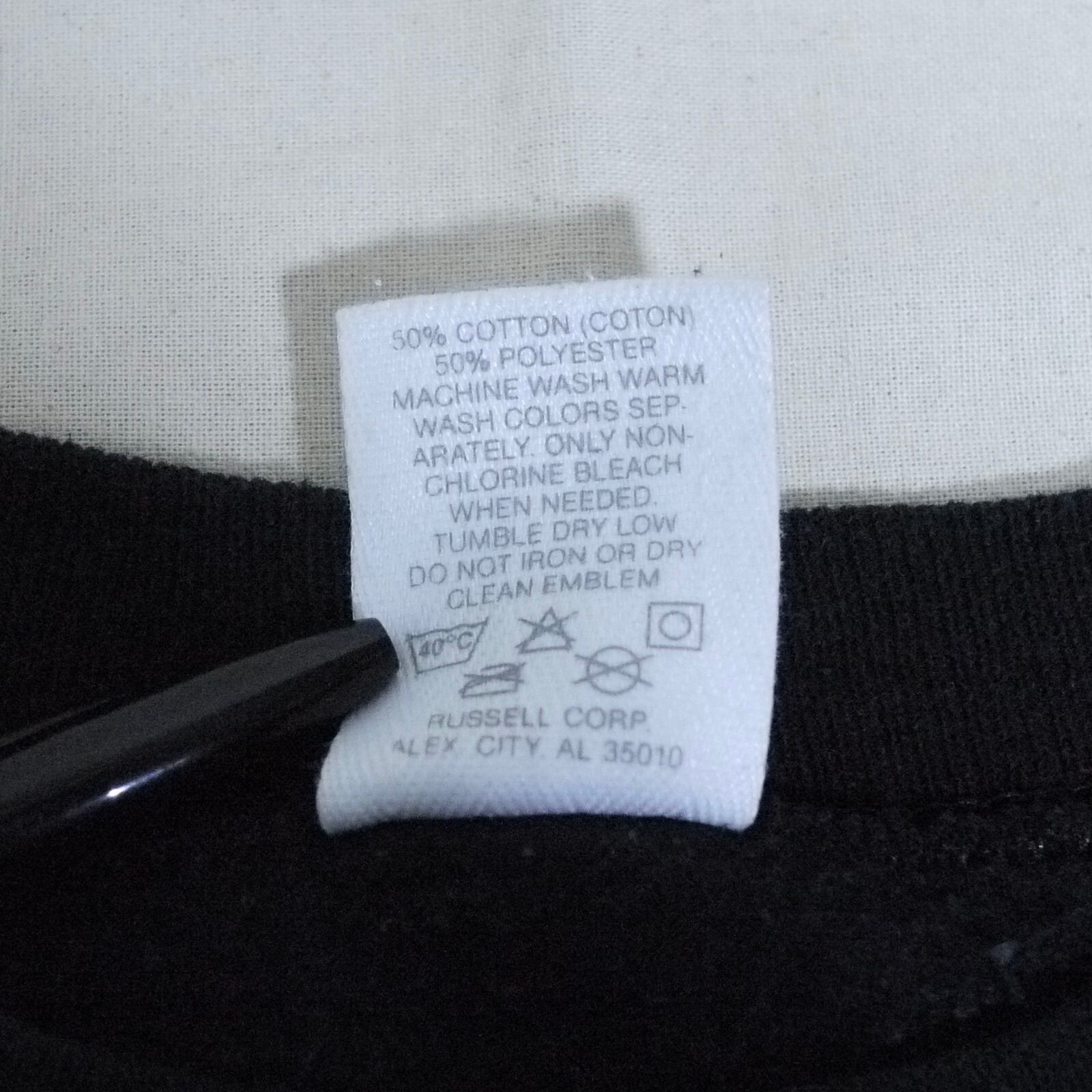 アメリカ製。ポリエステル50%、コットン50%。