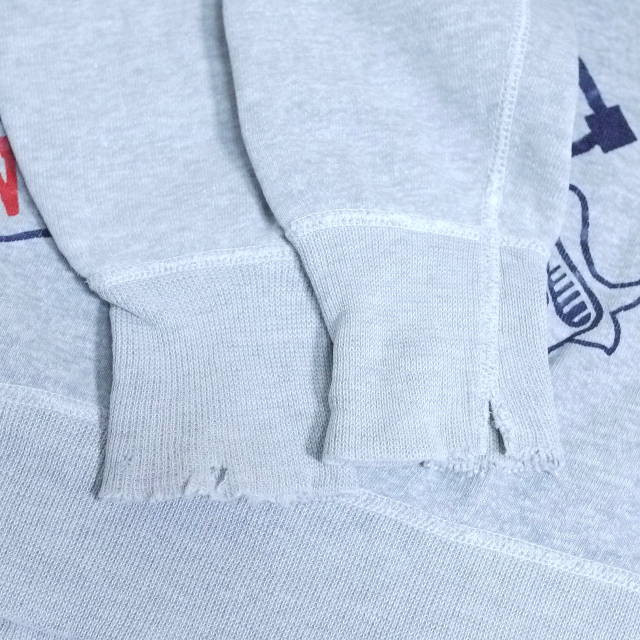 状態は、両袖のリブにダメージ。左袖にリペア。その他、経年による使用感はありますが、着用に問題はありません。