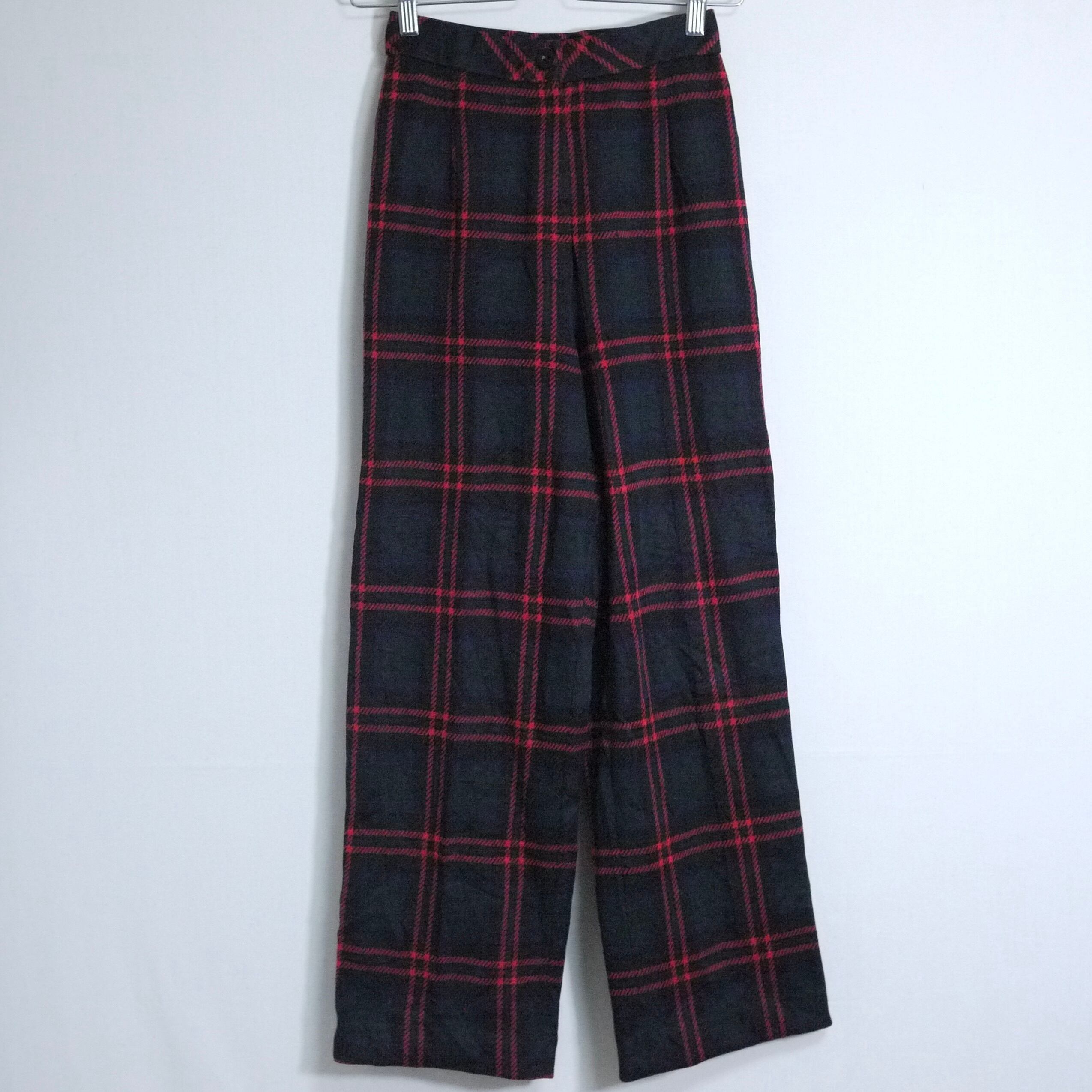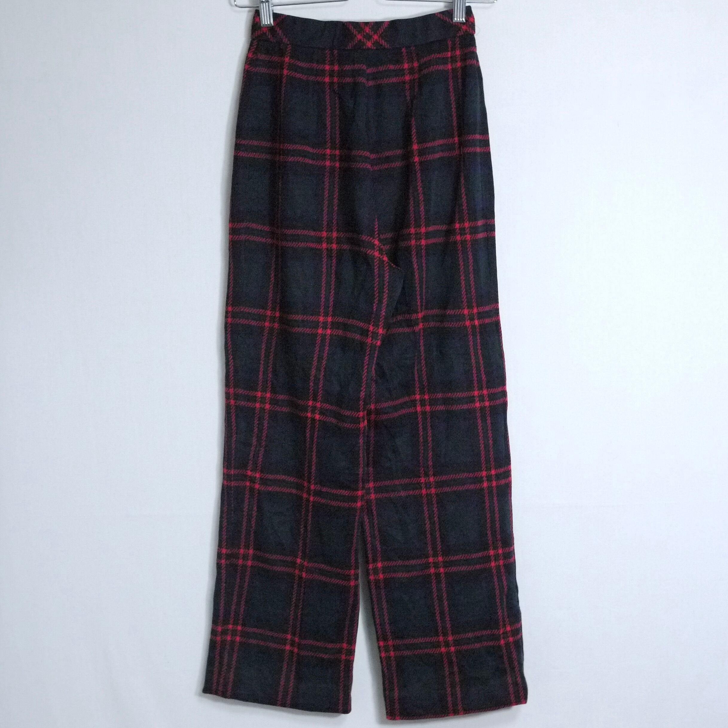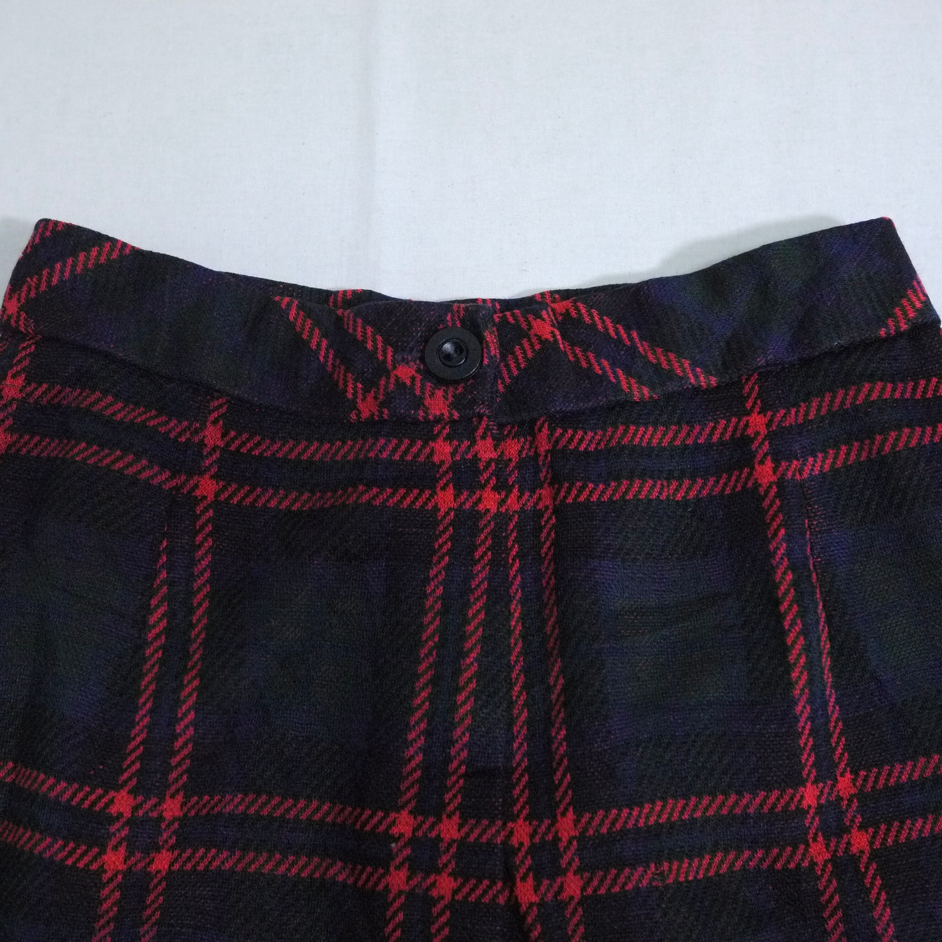 グリーンカラーがベースのチェック柄ウールパンツ。