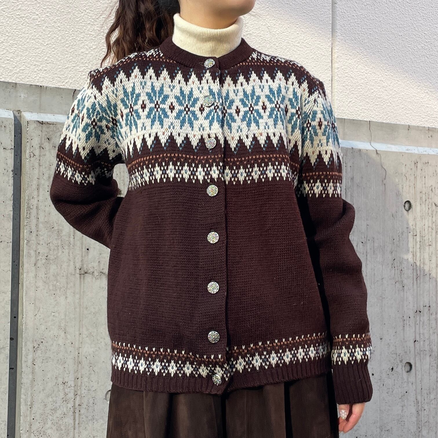 ブラウンカラーをベースにキレイな配色のノルディックカーディガン。