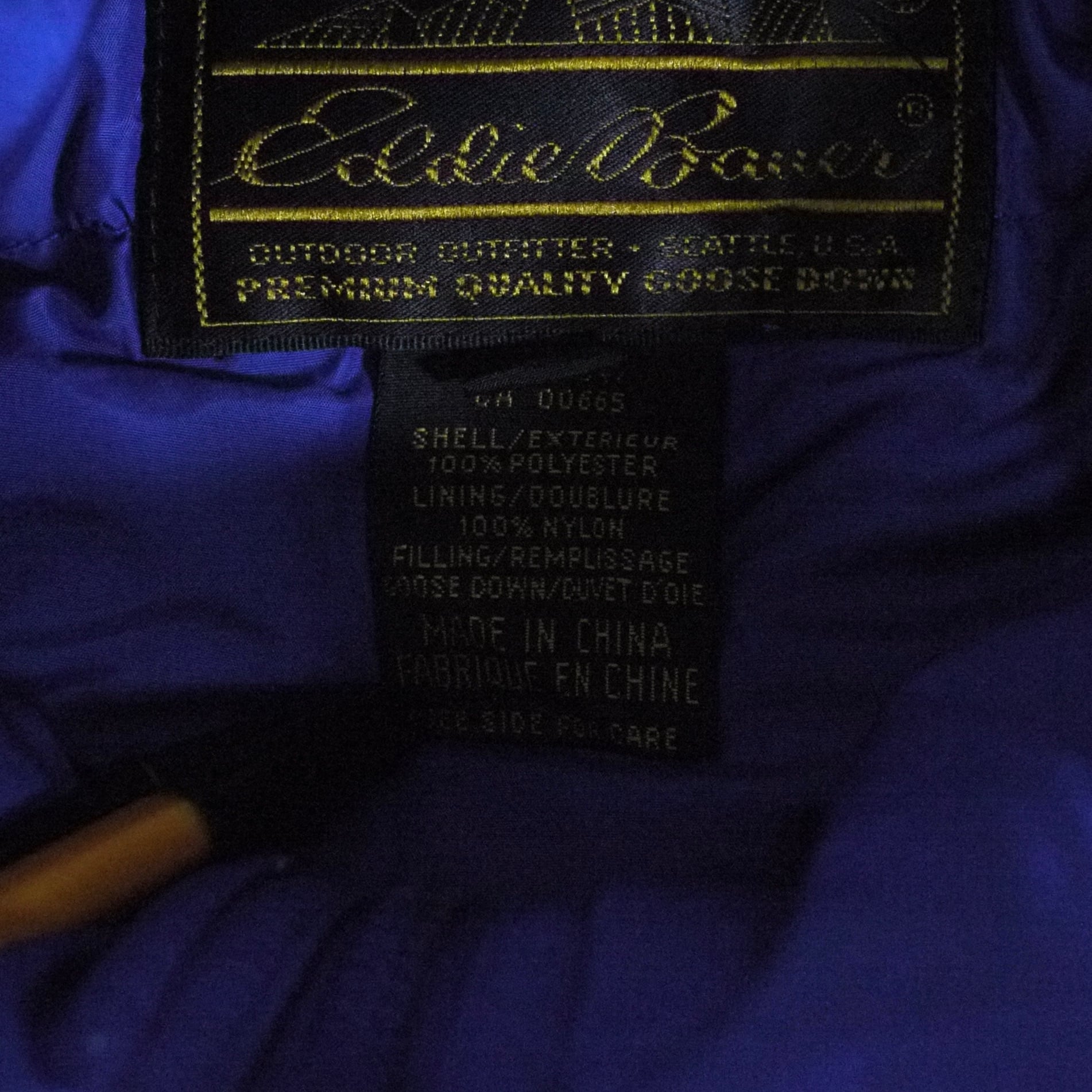 黒タグ。シェルはポリエステル100%、インサレーションはグースダウン。