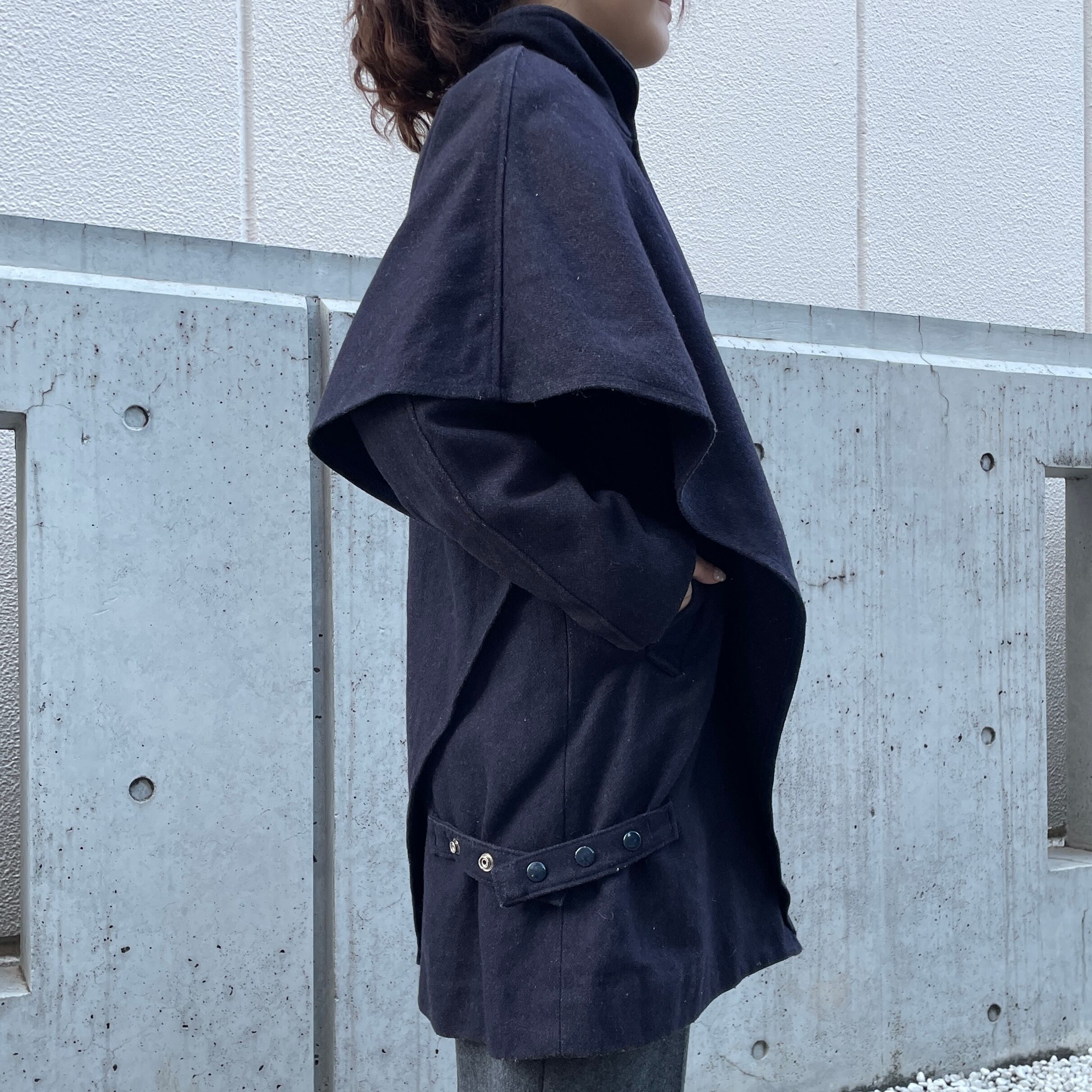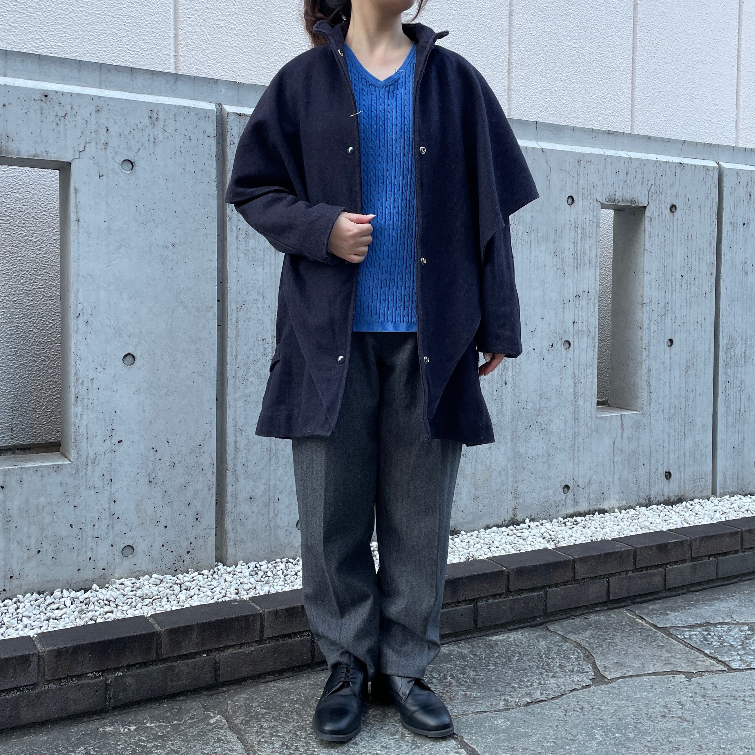 ネイビーカラーのウールコート。