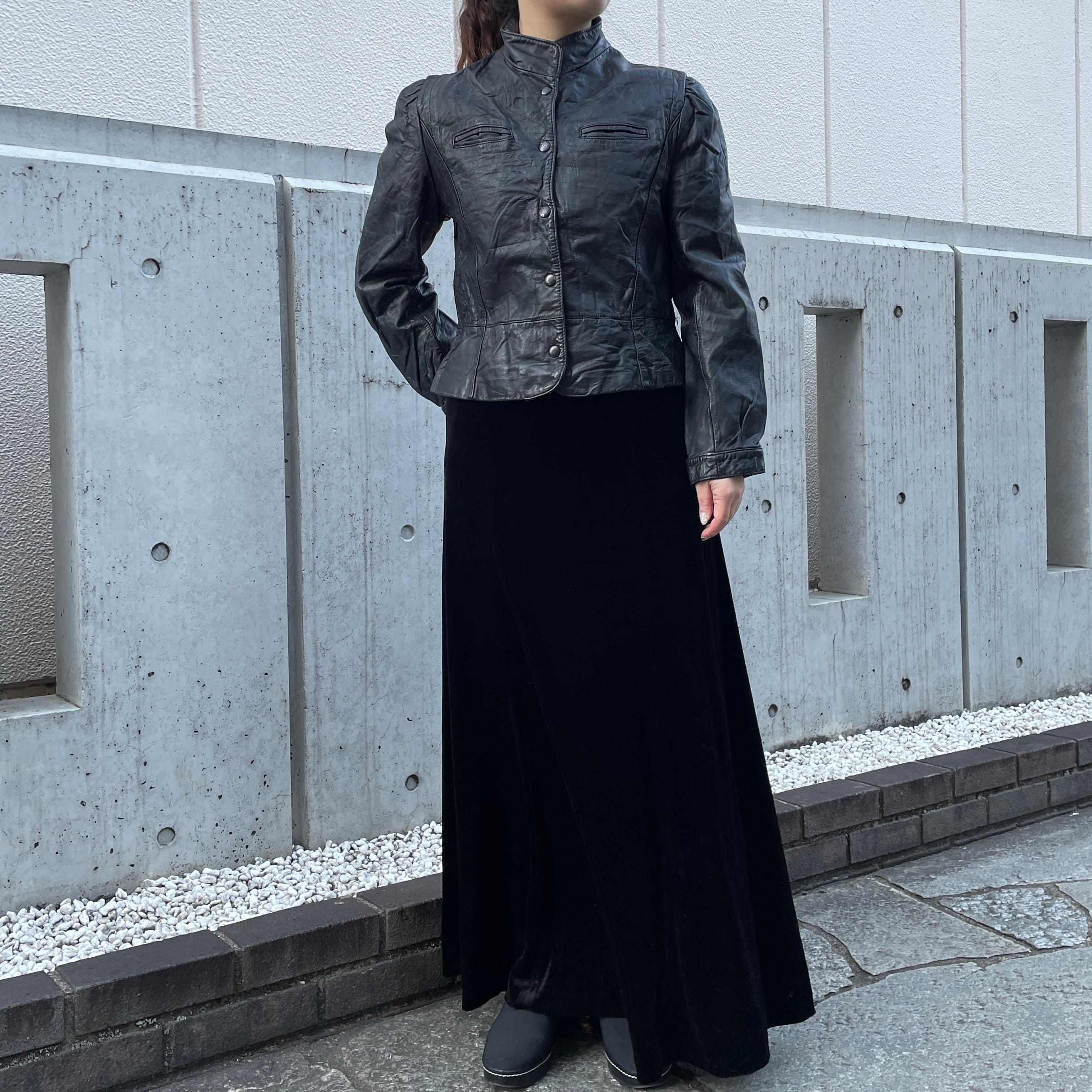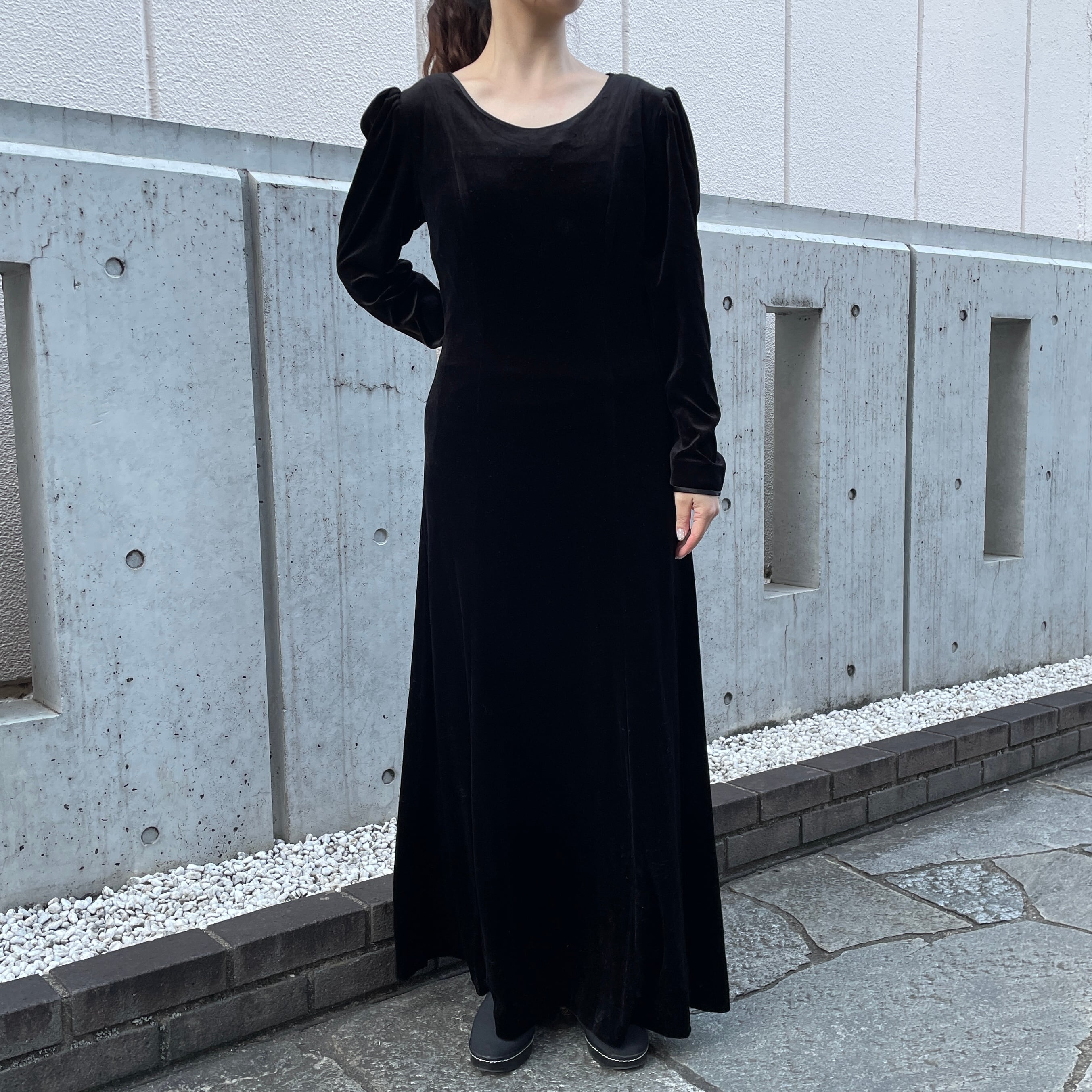 ブラックカラーのベロアワンピース。