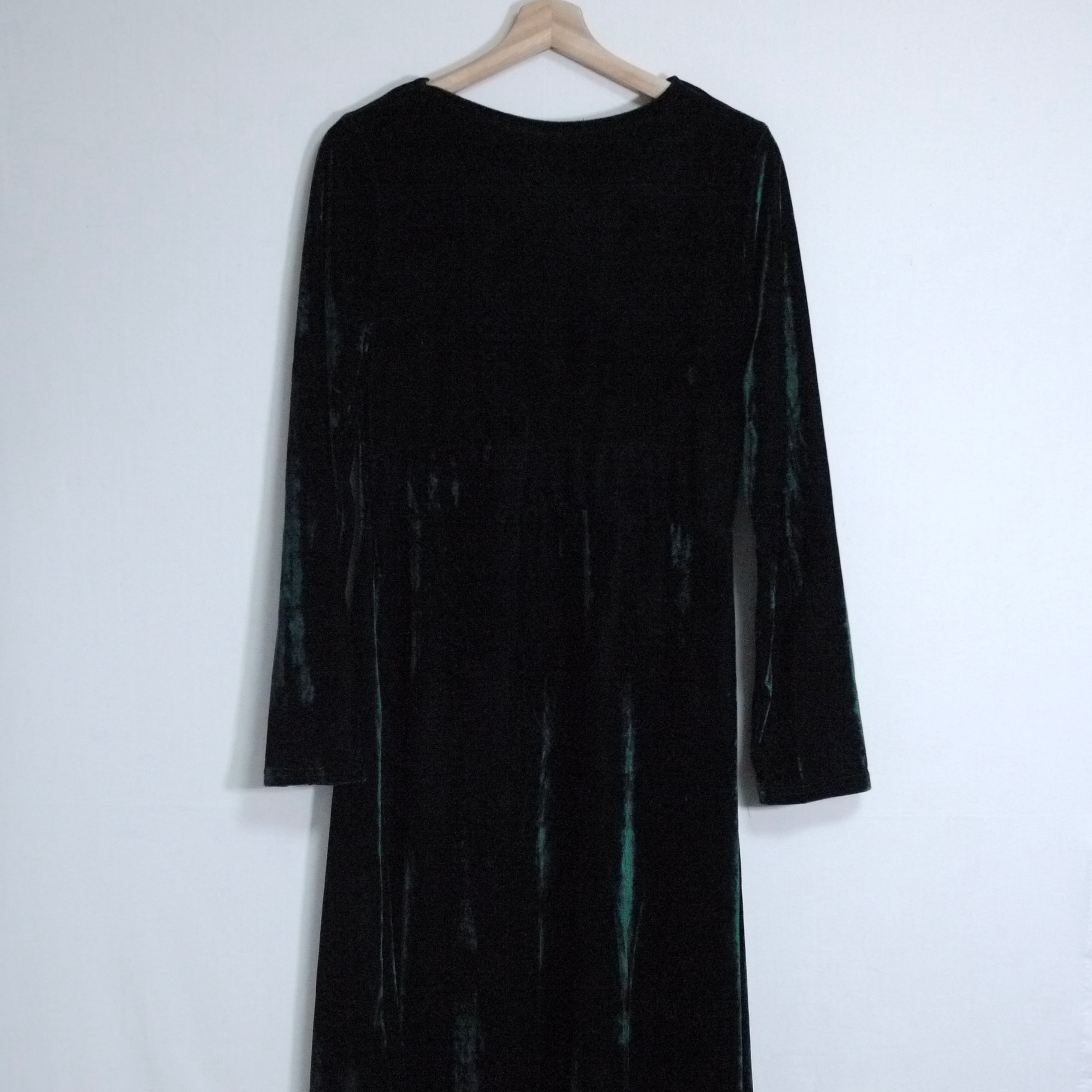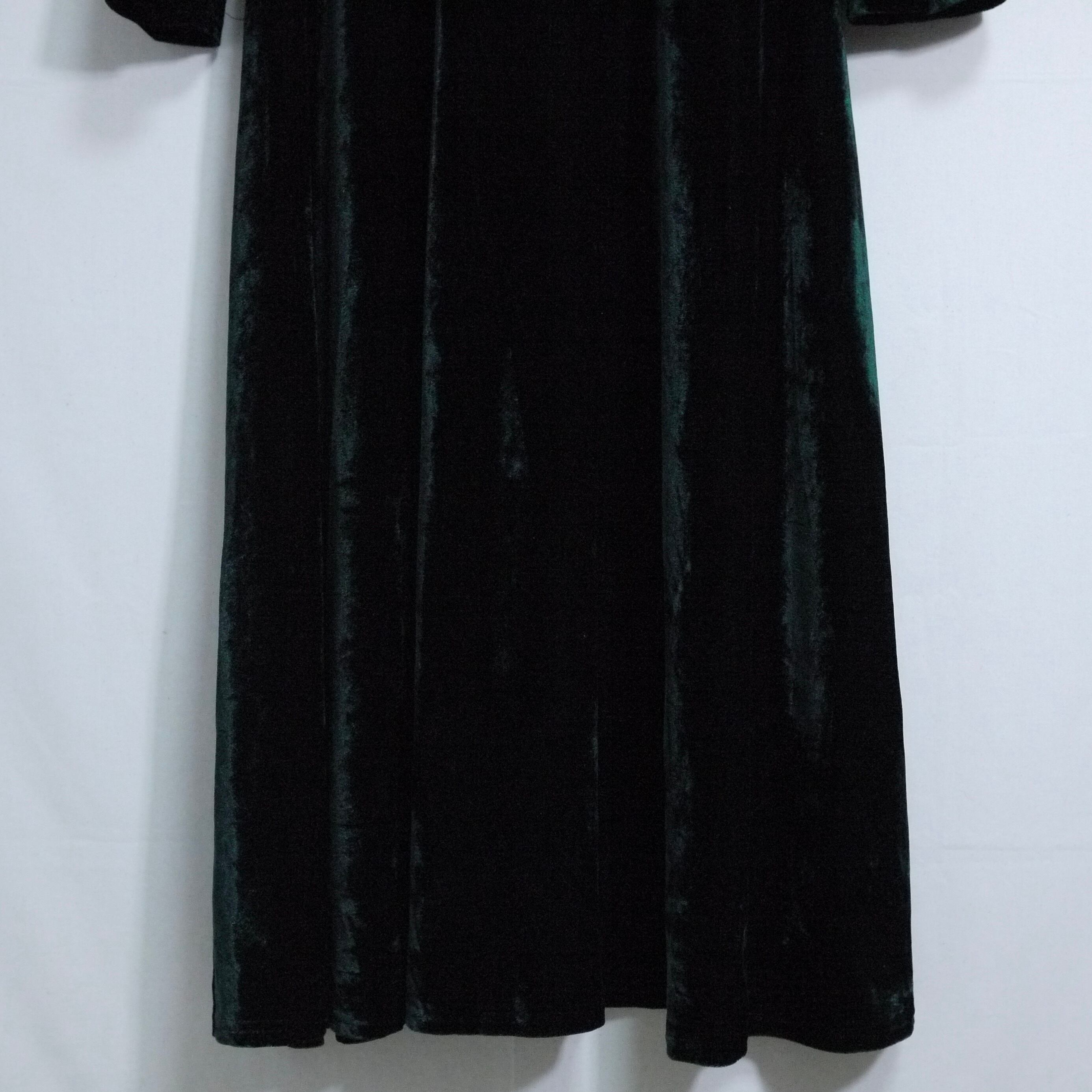 グリーンカラーのベロアワンピース。