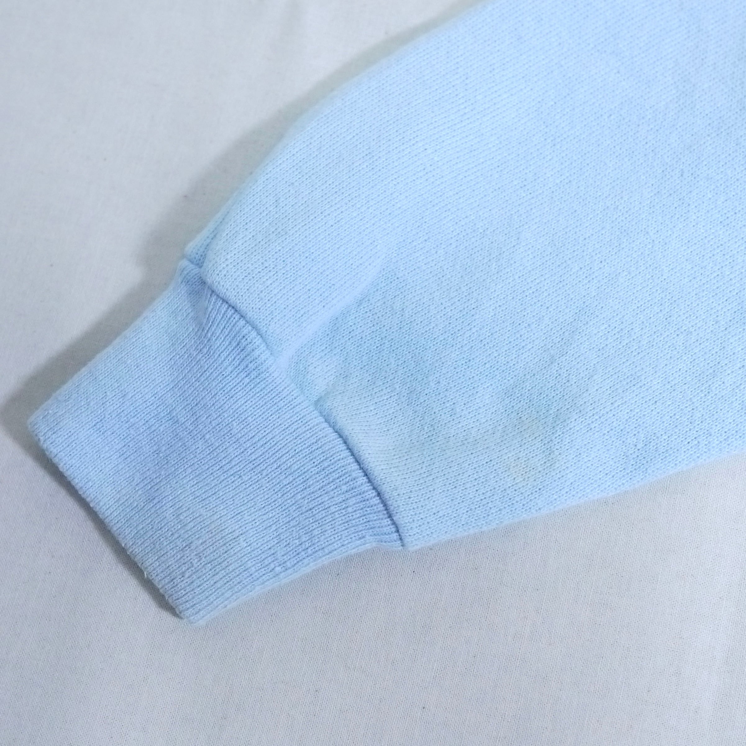 ライトブルーカラーのスウェット。