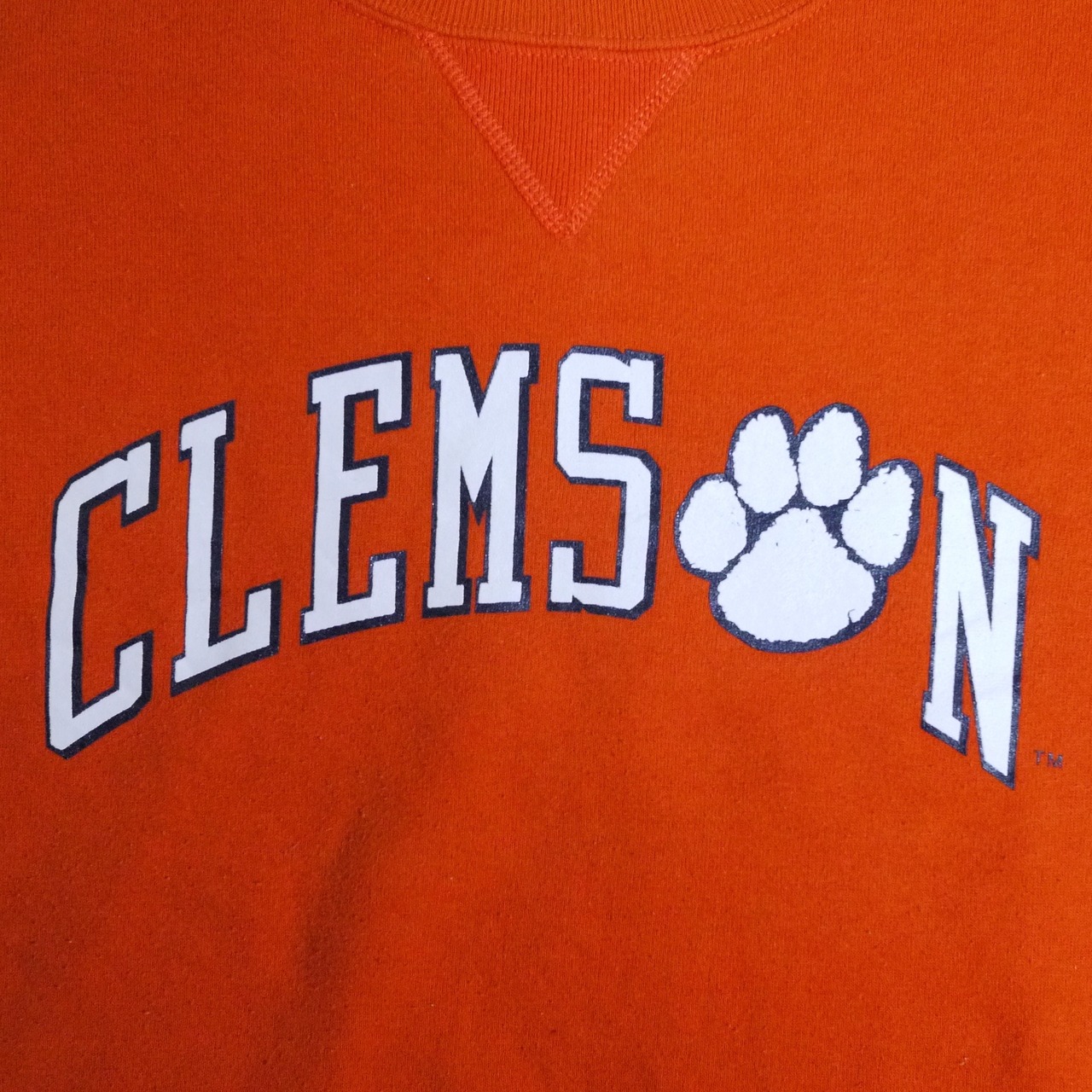 オレンジカラーのスウェット。