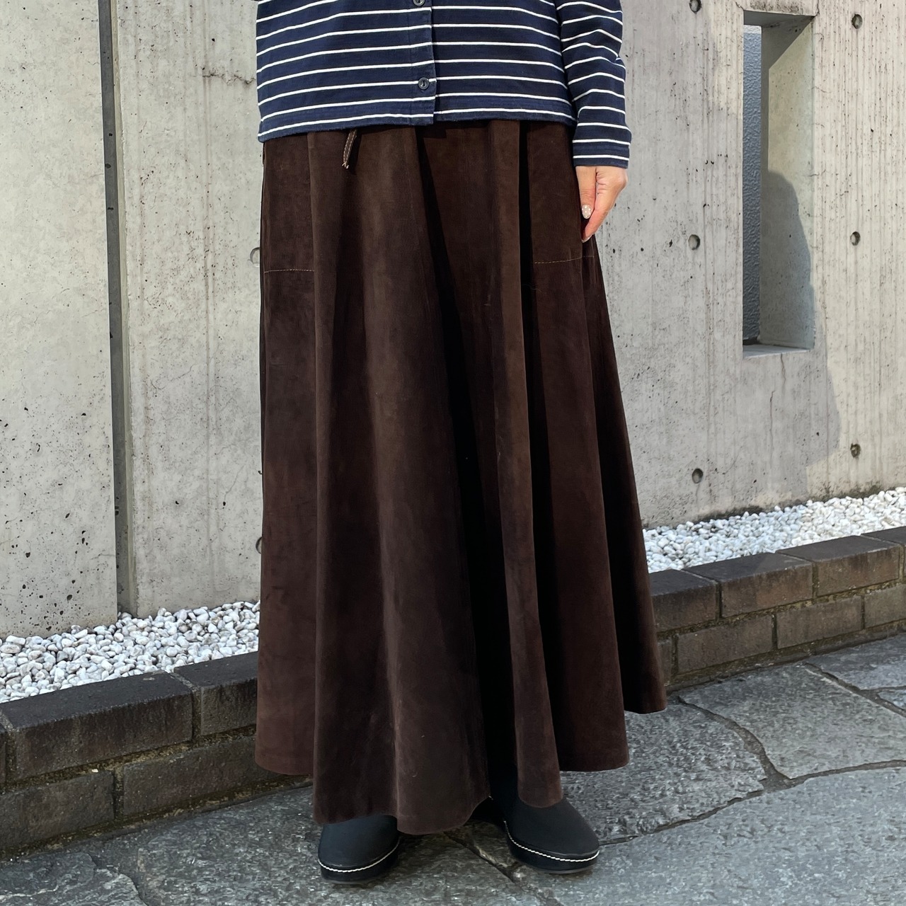 ブラウンカラーのスカート。