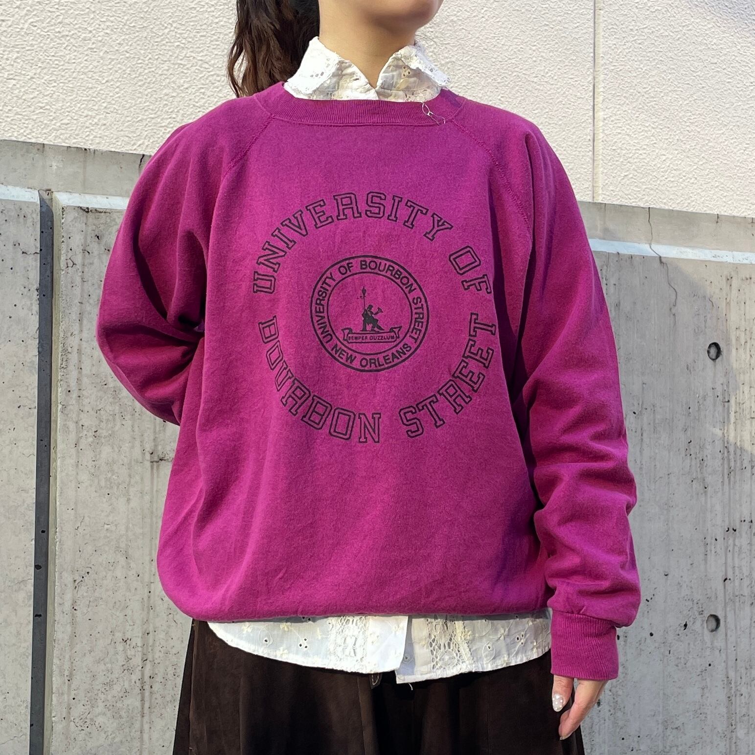 パープルカラーのスウェット。