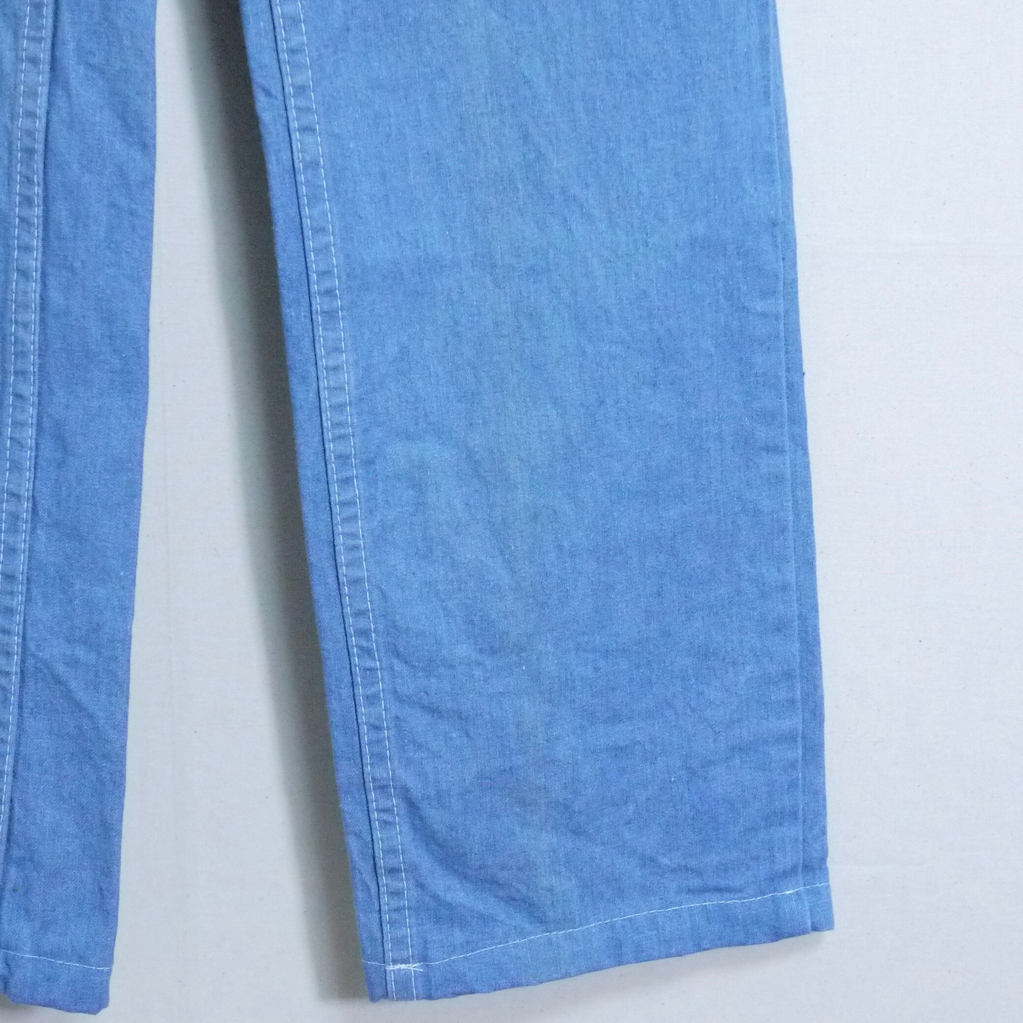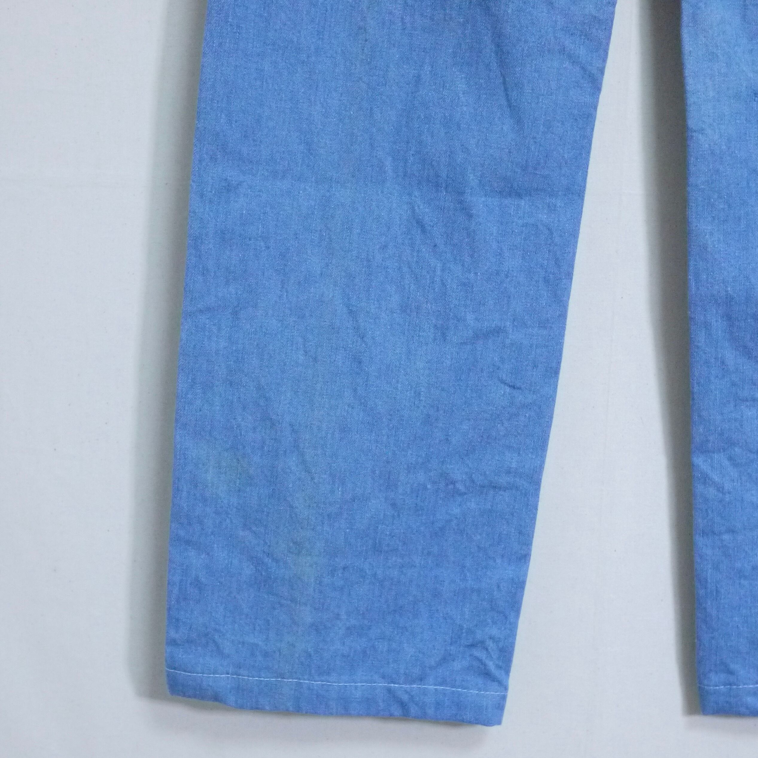 状態は、右膝の前後共に色抜けのような汚れ。両足とも縦に保管時の折りヤケ。その他、スレなどの経年による使用感はありますが、着用に問題はありません。