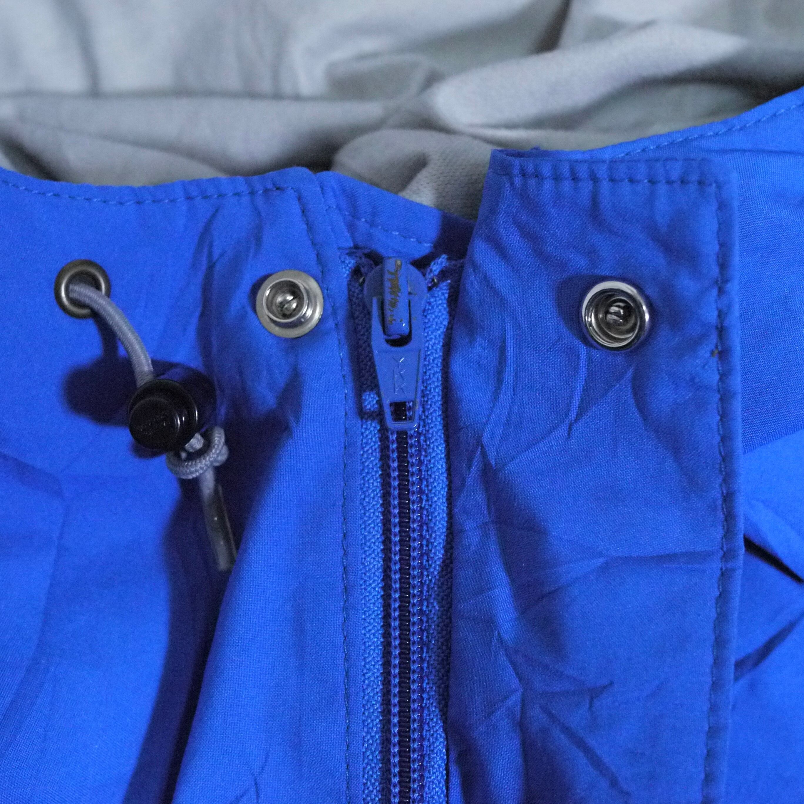 ブルーカラーのマウンテンパーカ。