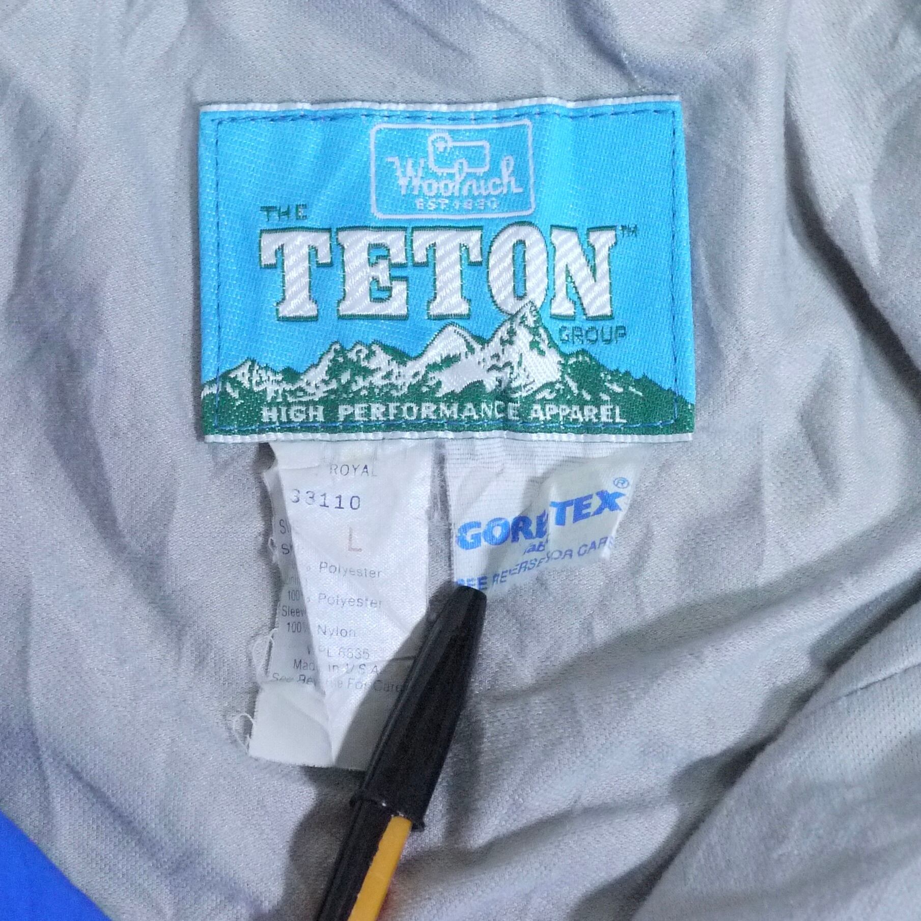 アメリカ製。ポリエステル100%。GORE-TEX。