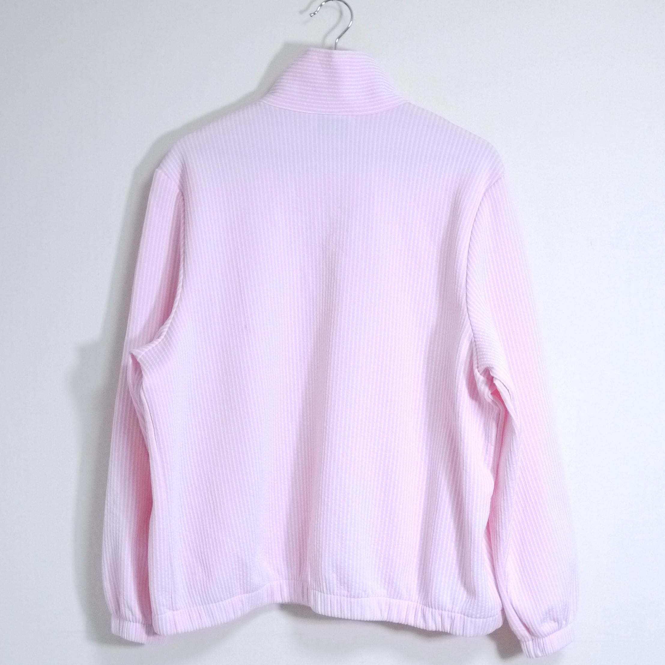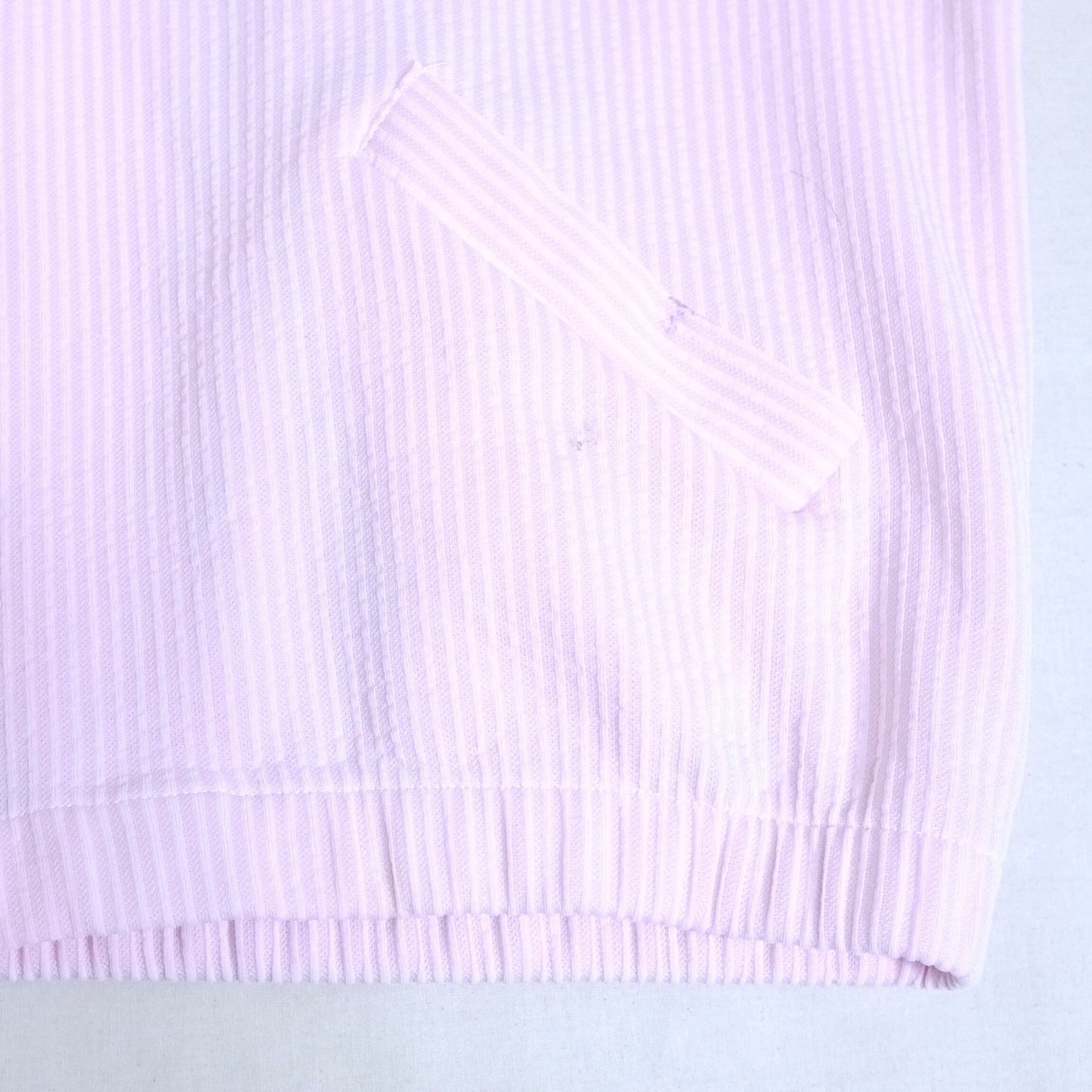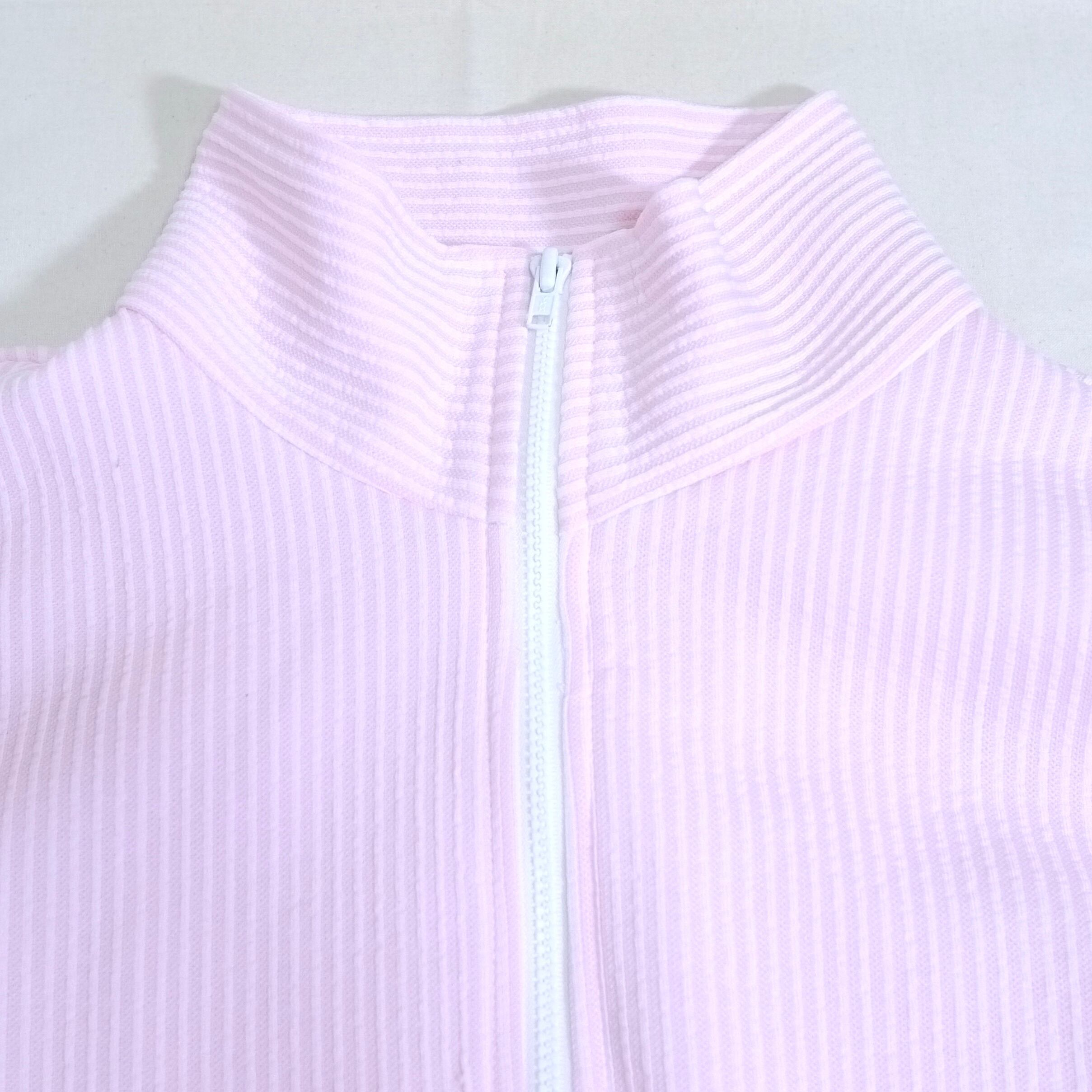 ピンク×ホワイトのストライプ柄ジャケット。