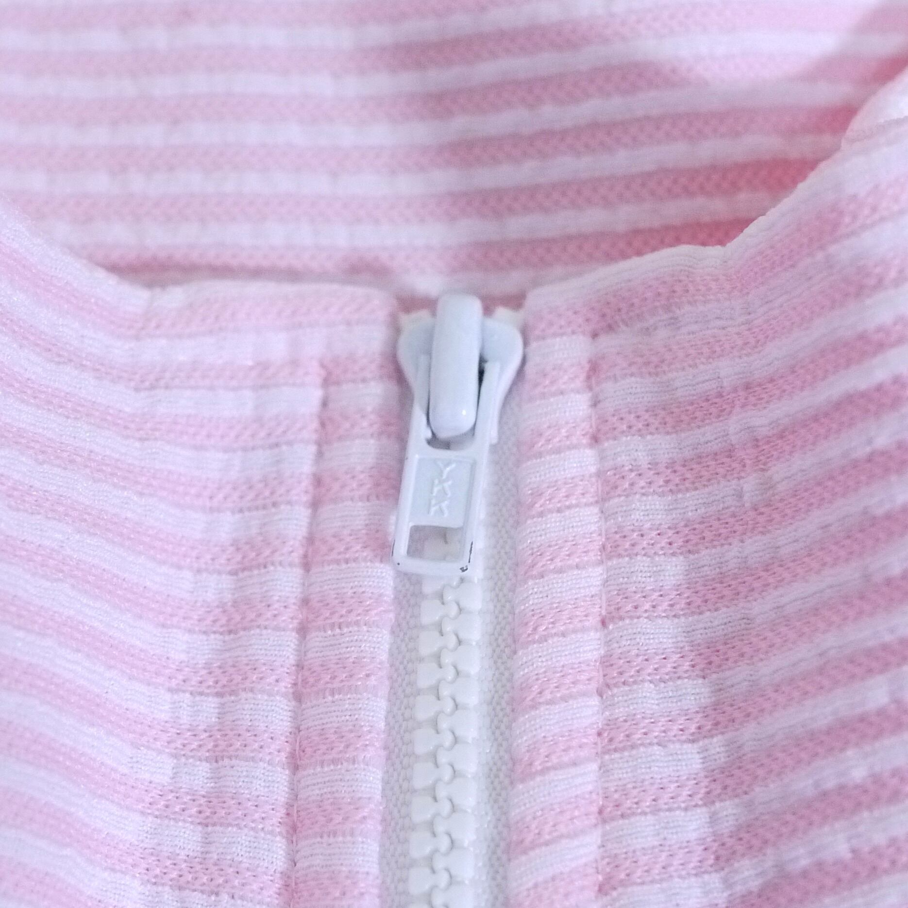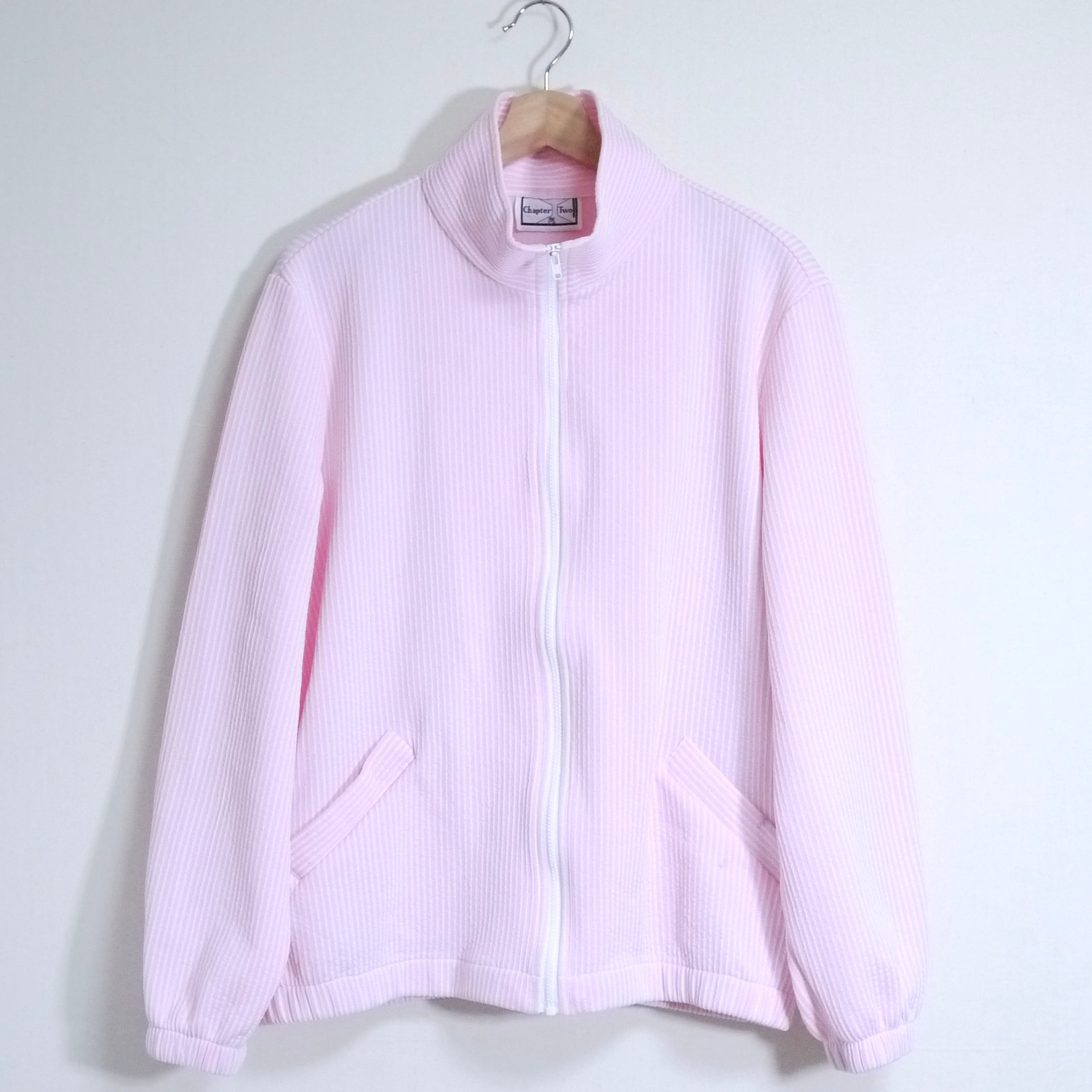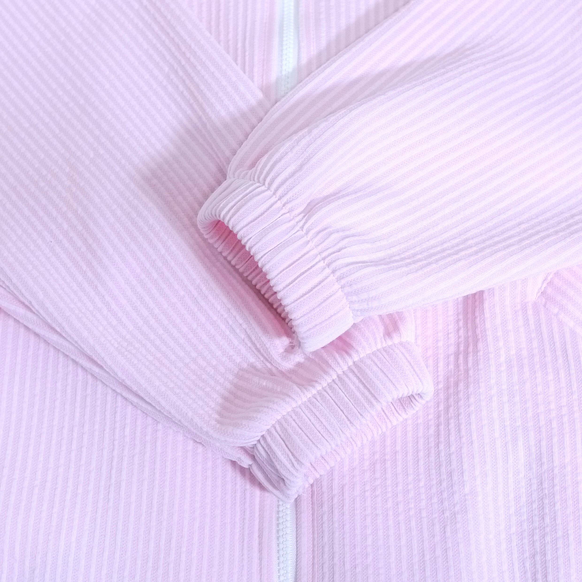 ピンク×ホワイトのストライプ柄ジャケット。