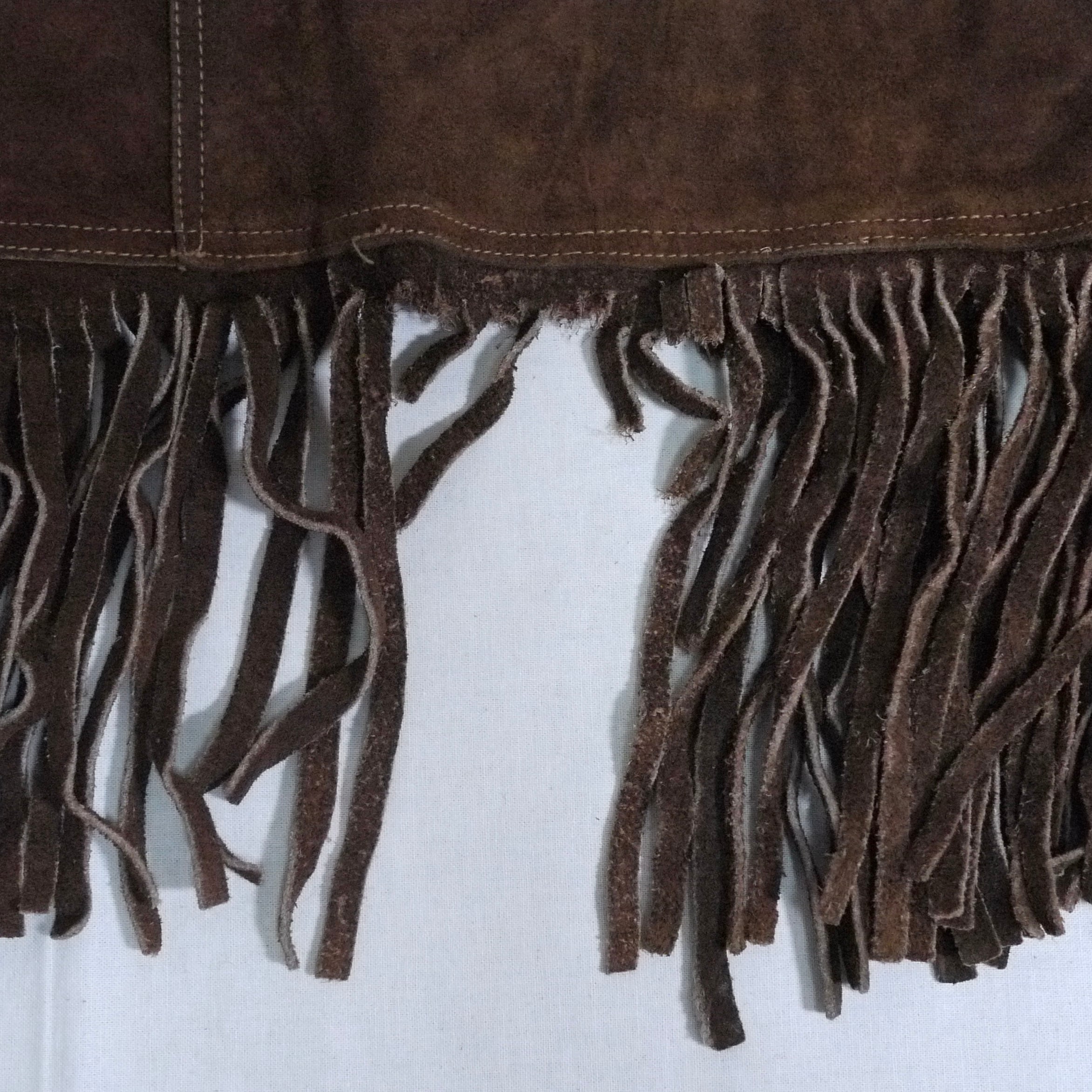 状態は、左脇にダメージ。フリンジの一部が欠損。その他、経年による使用感は多少ありますが、着用に問題はありません。