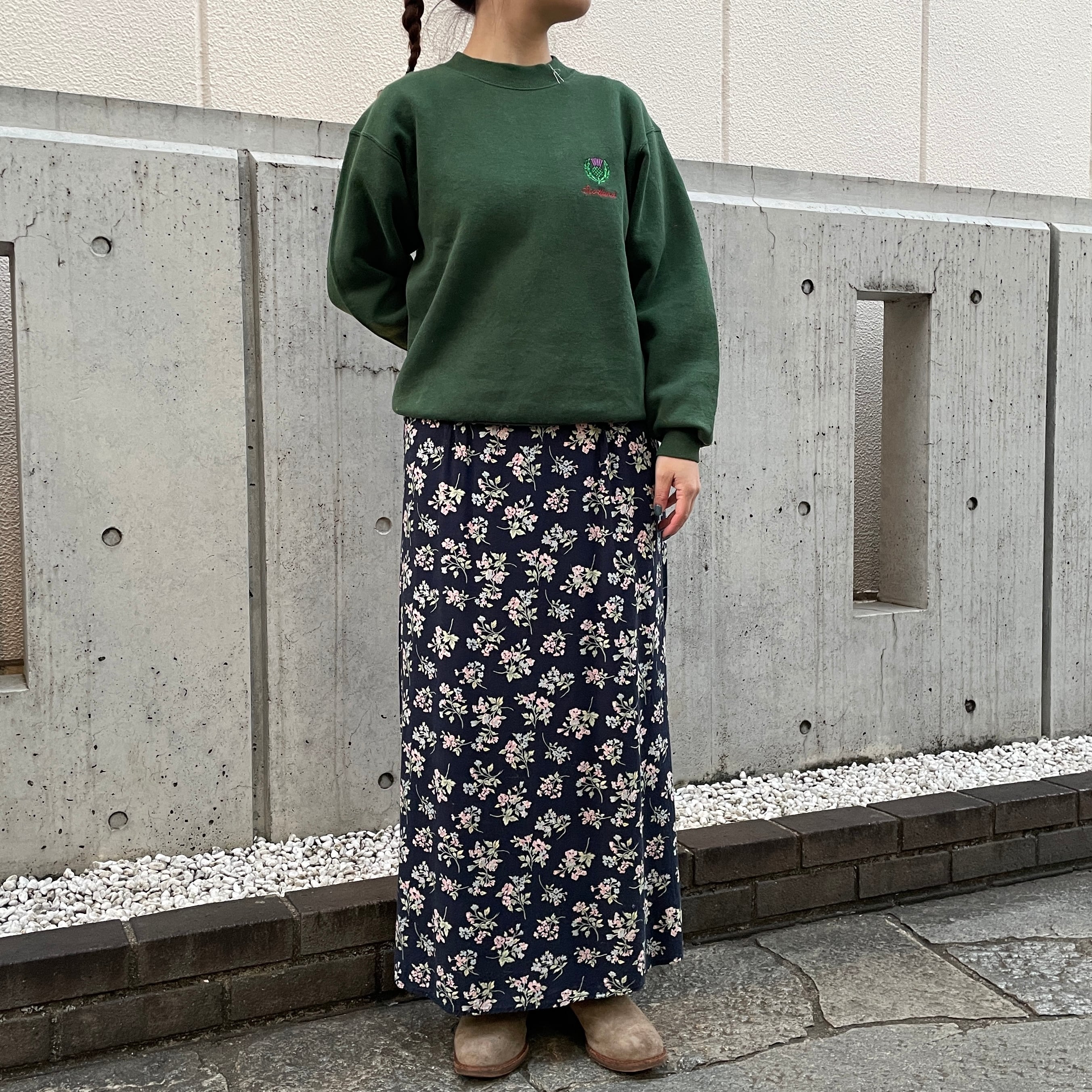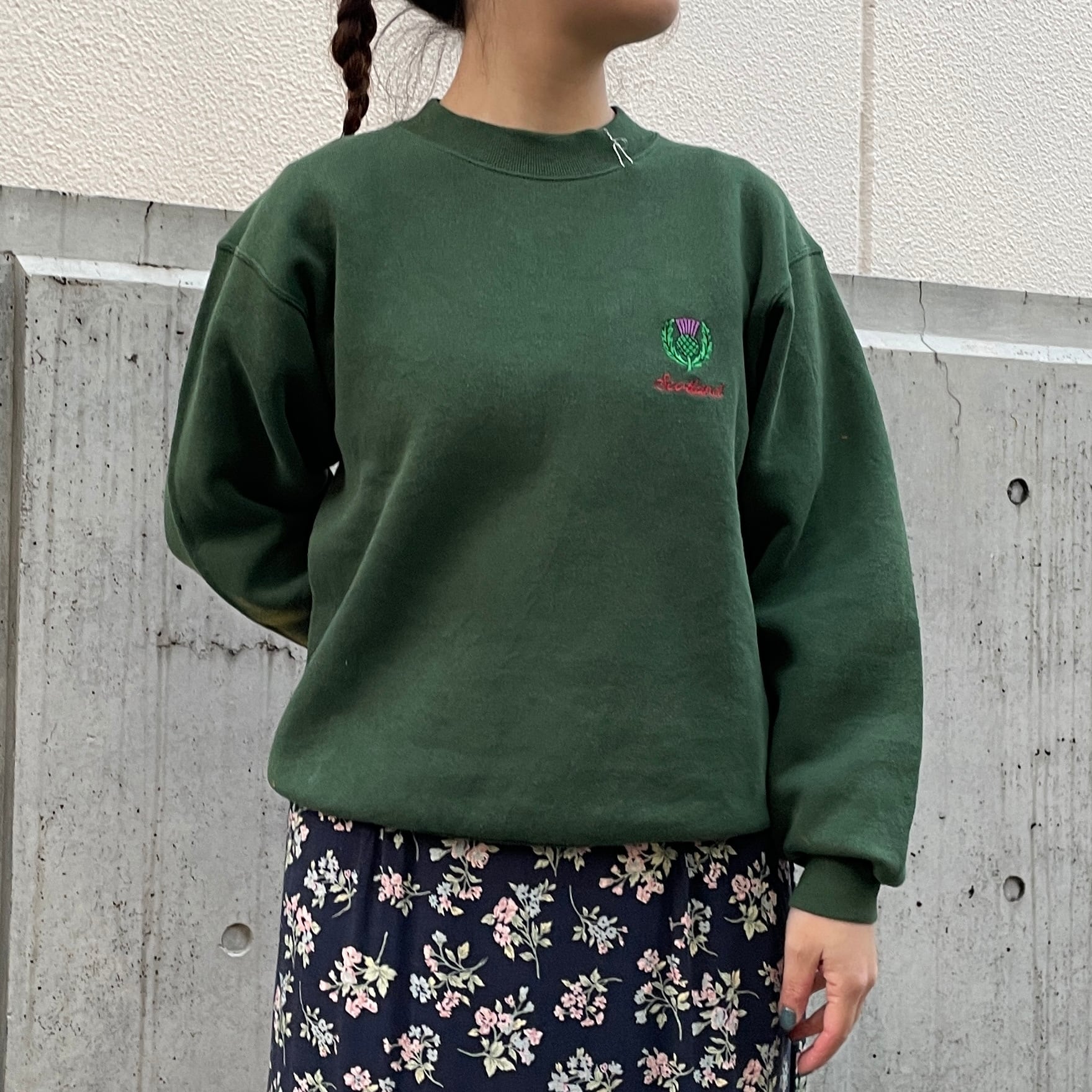 グリーンカラーのスウェット。