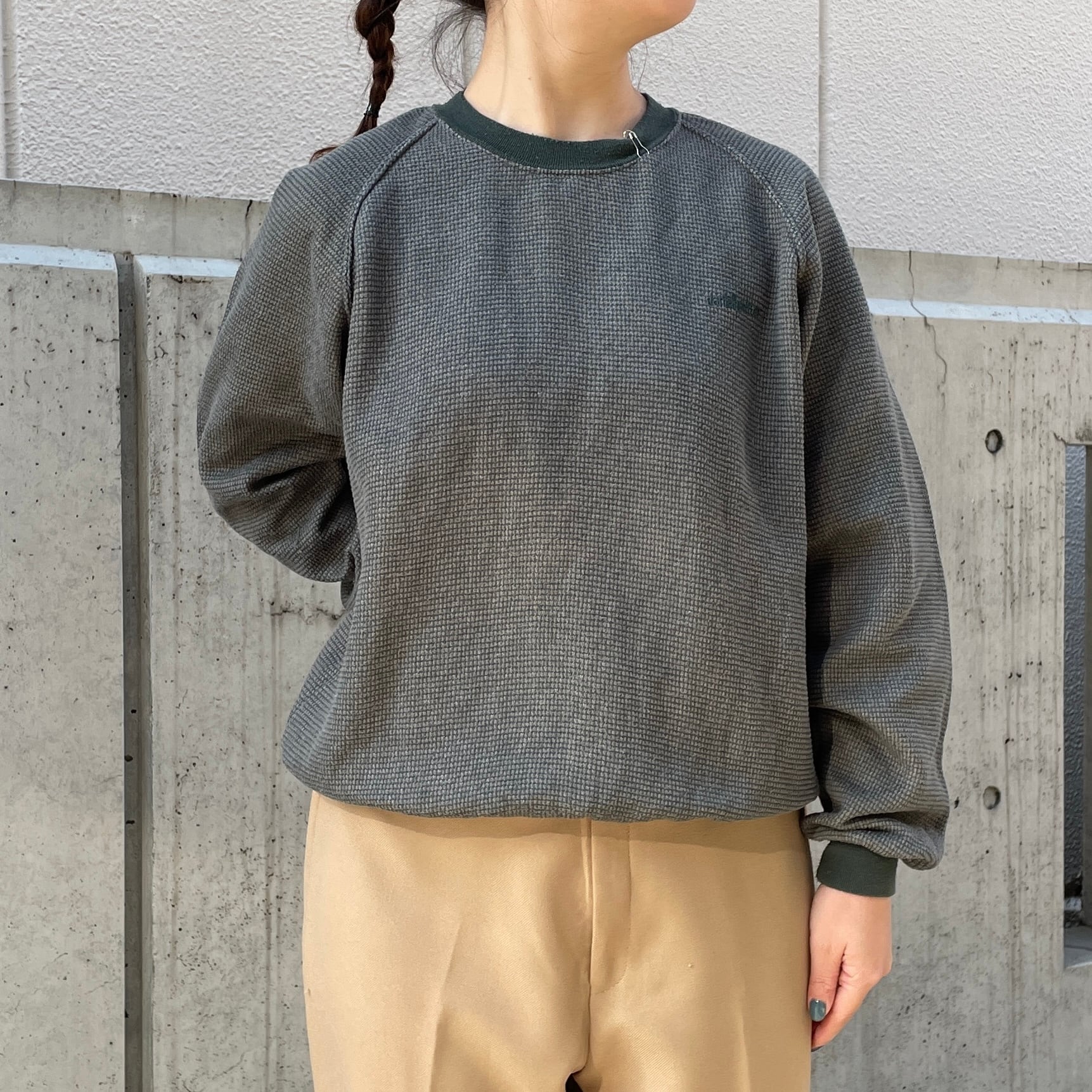 グリーンカラーのスウェット。