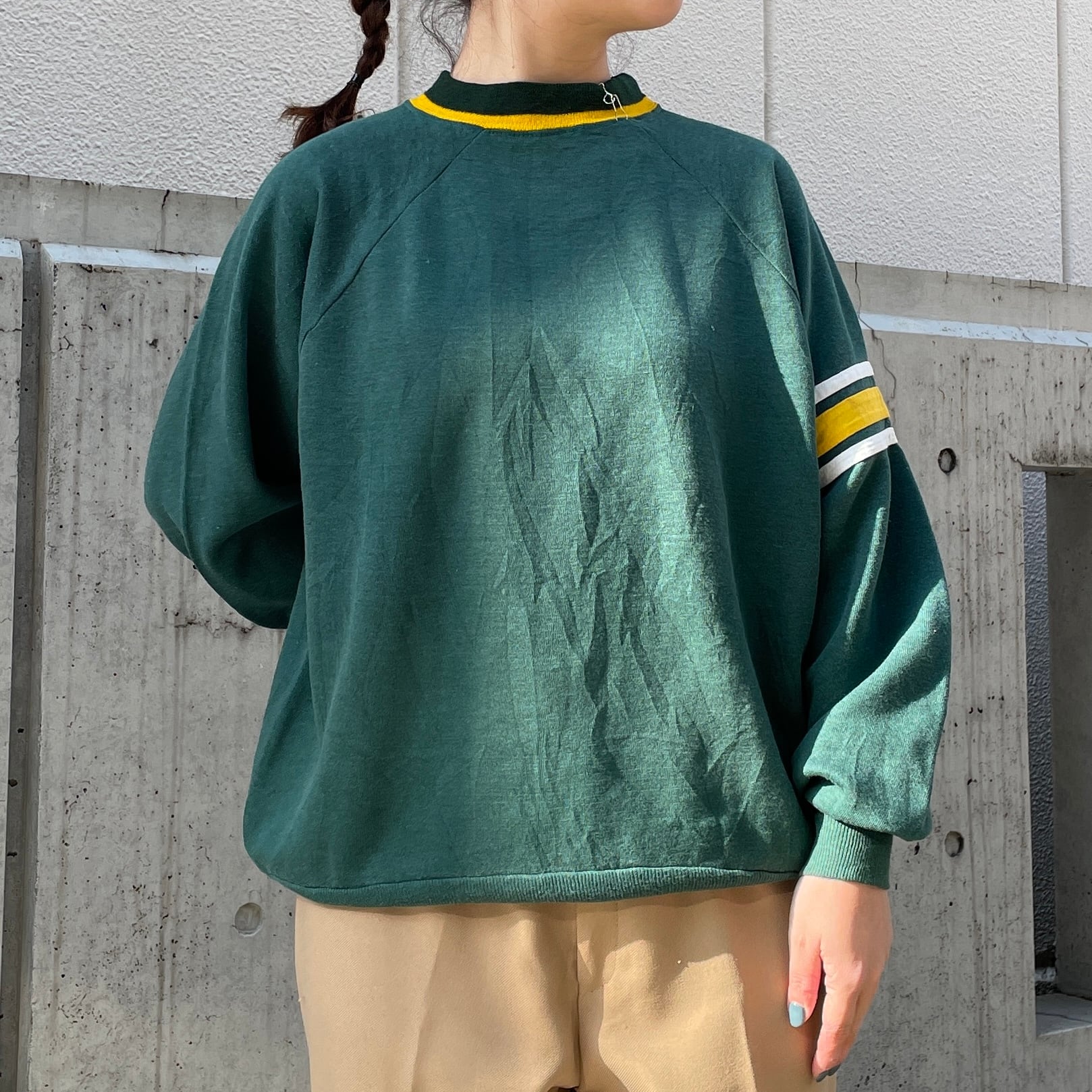 グリーンカラーのスウェット。