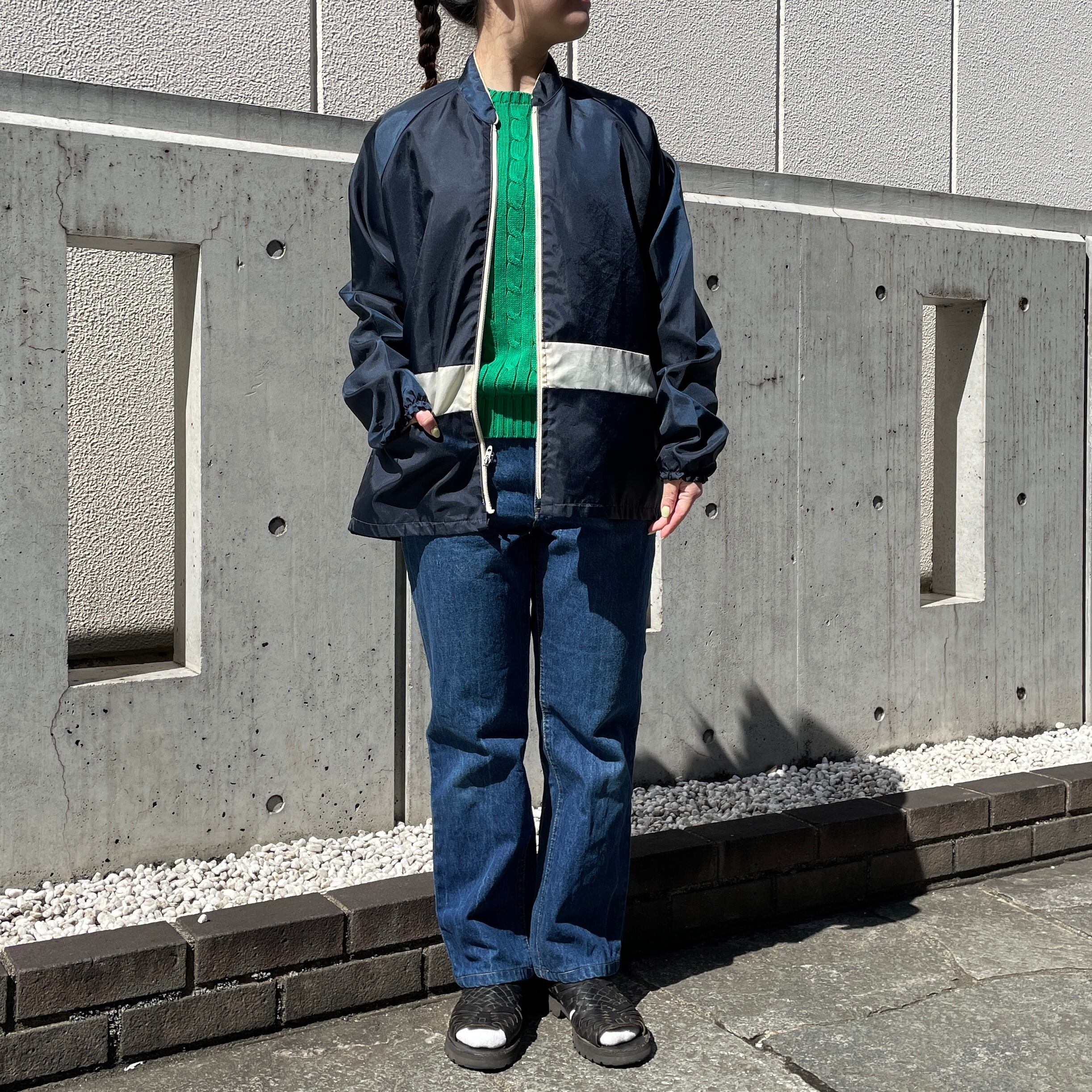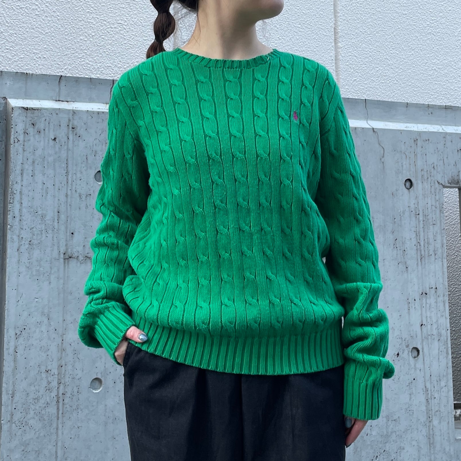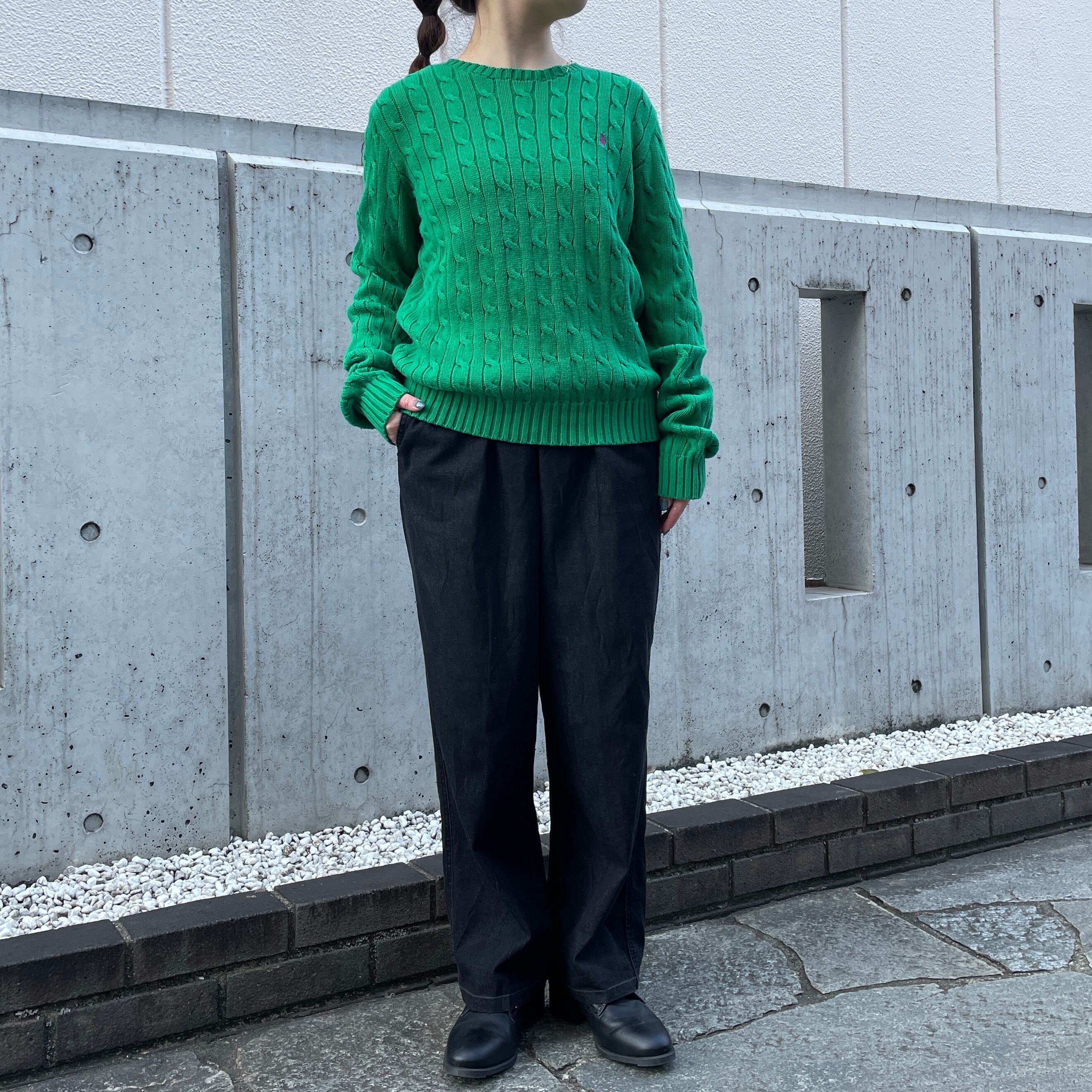 グリーンカラーのコットンセーター。