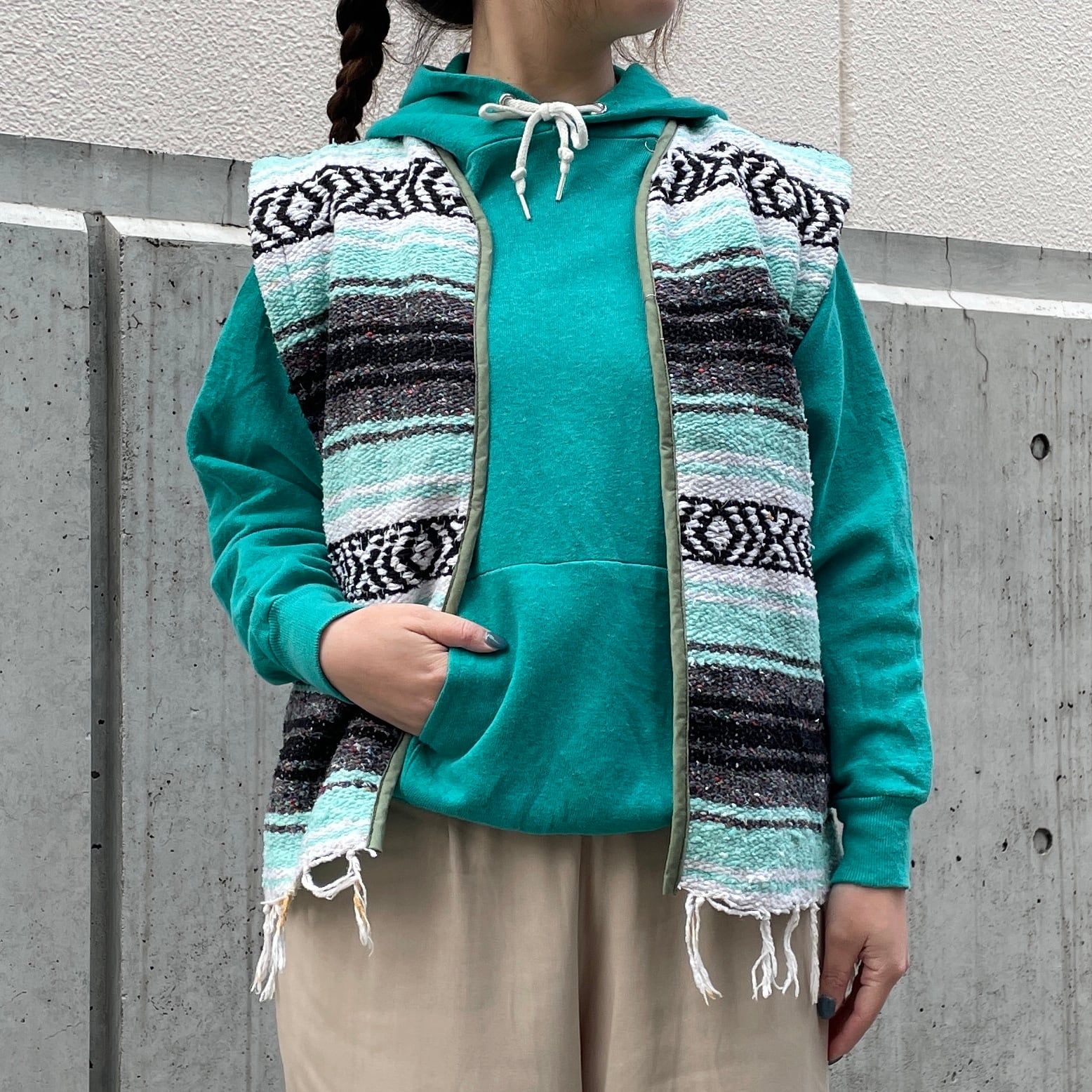 メキシカンラグで制作したベスト。