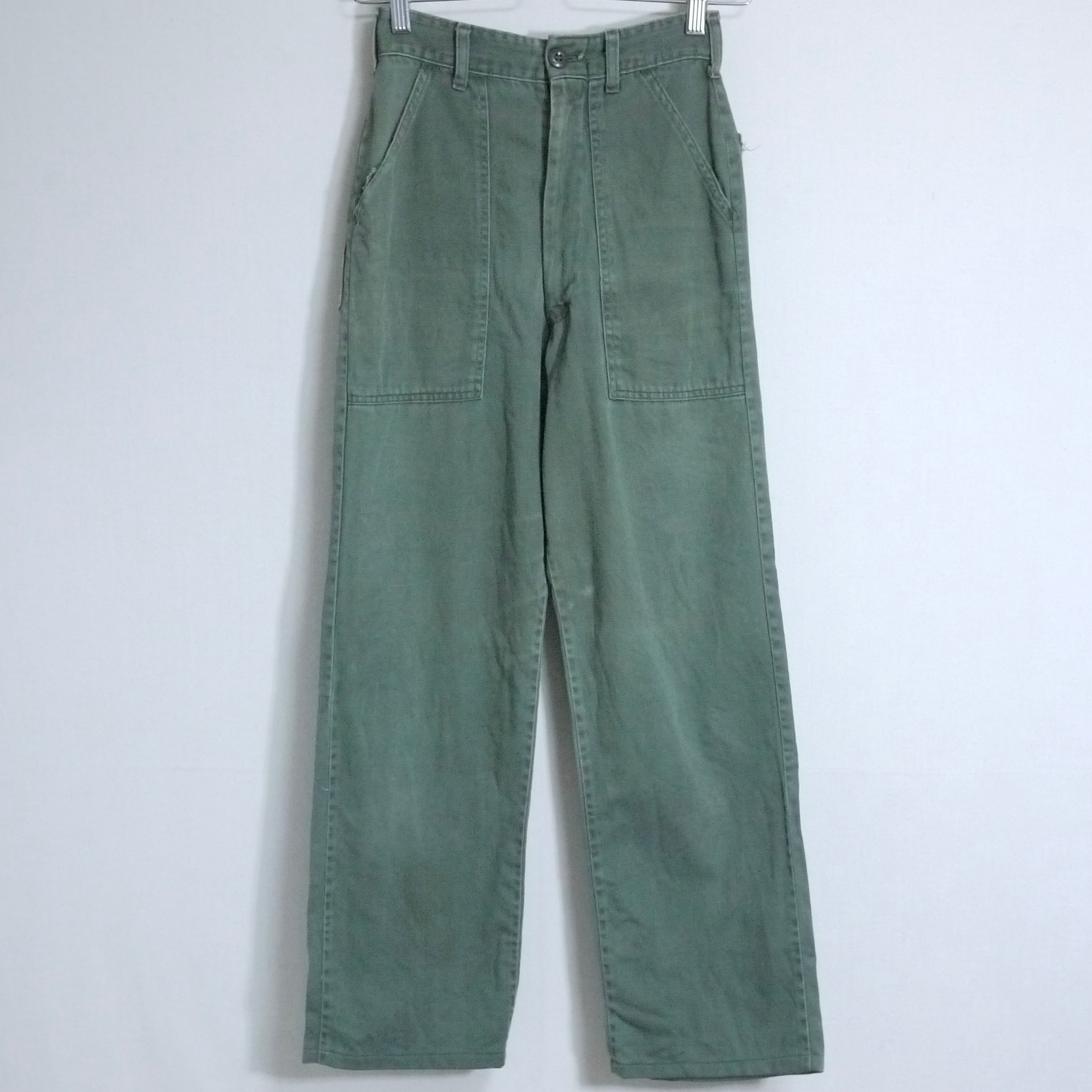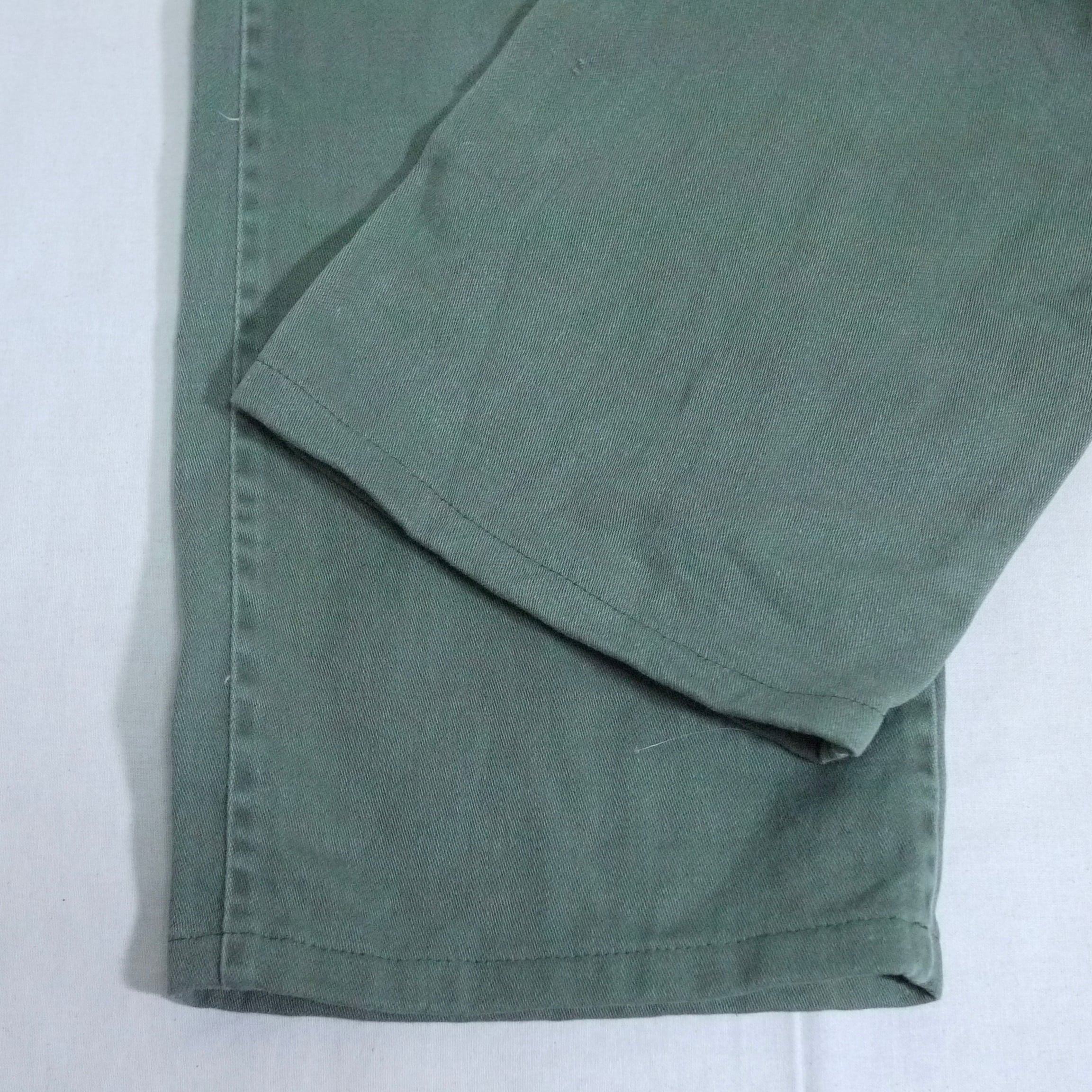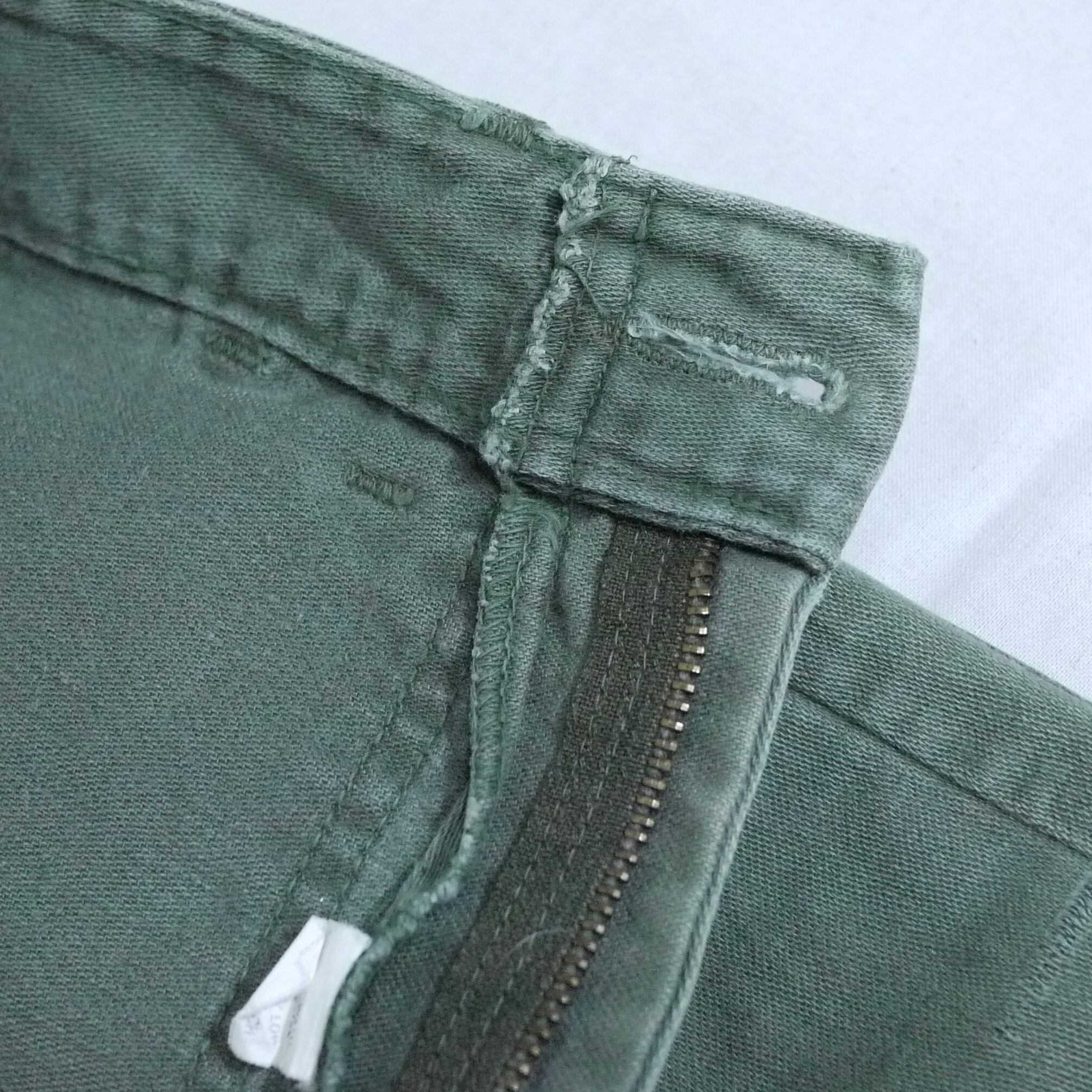 状態は、ヒップを摘んでウエストも縫い直すカスタムがされています。右ヒップ付近にヤケ。右膝付近に汚れ。その他、経年による使用感はありますが、着用に問題はありません。