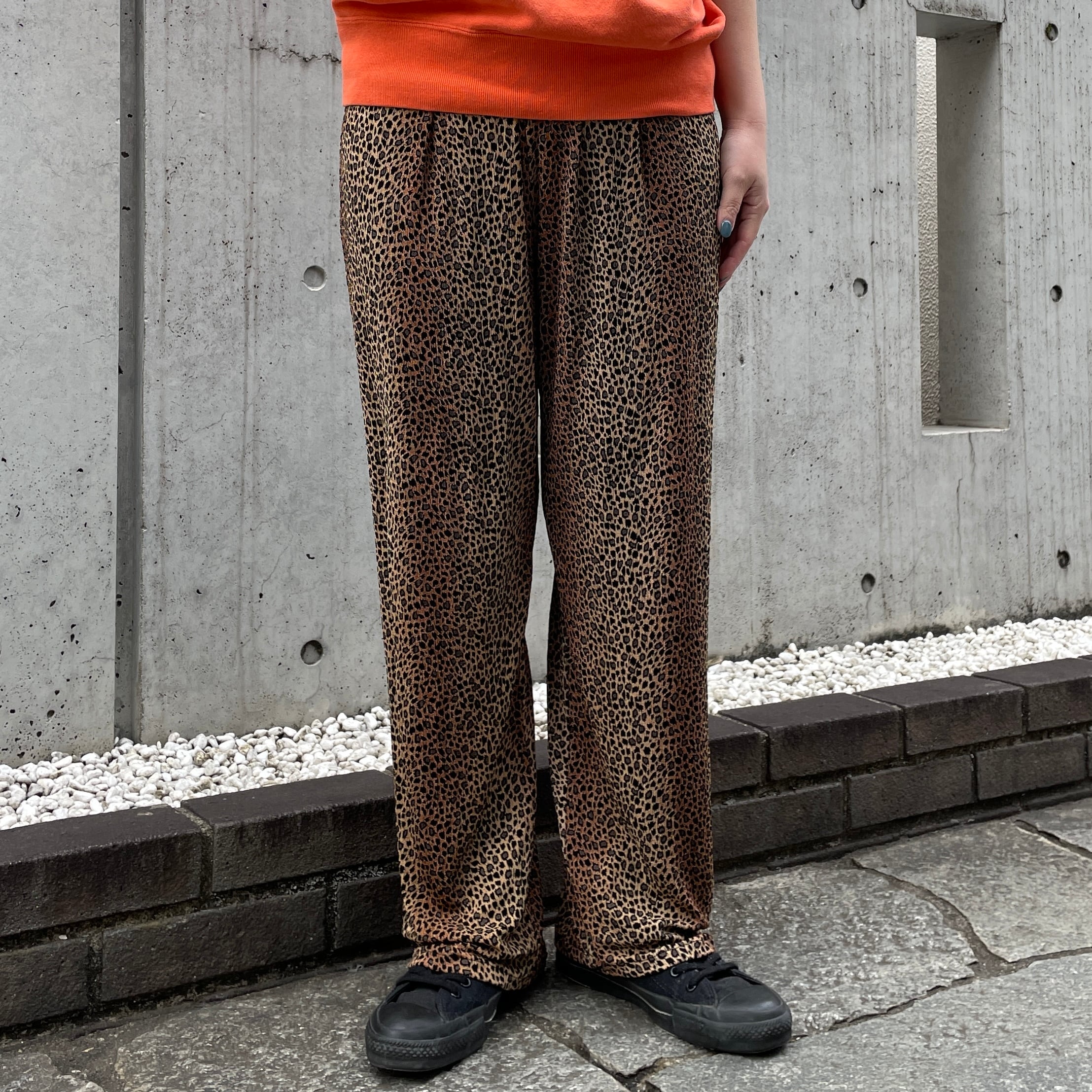 ブラウンカラーのレオパード柄イージーパンツ。