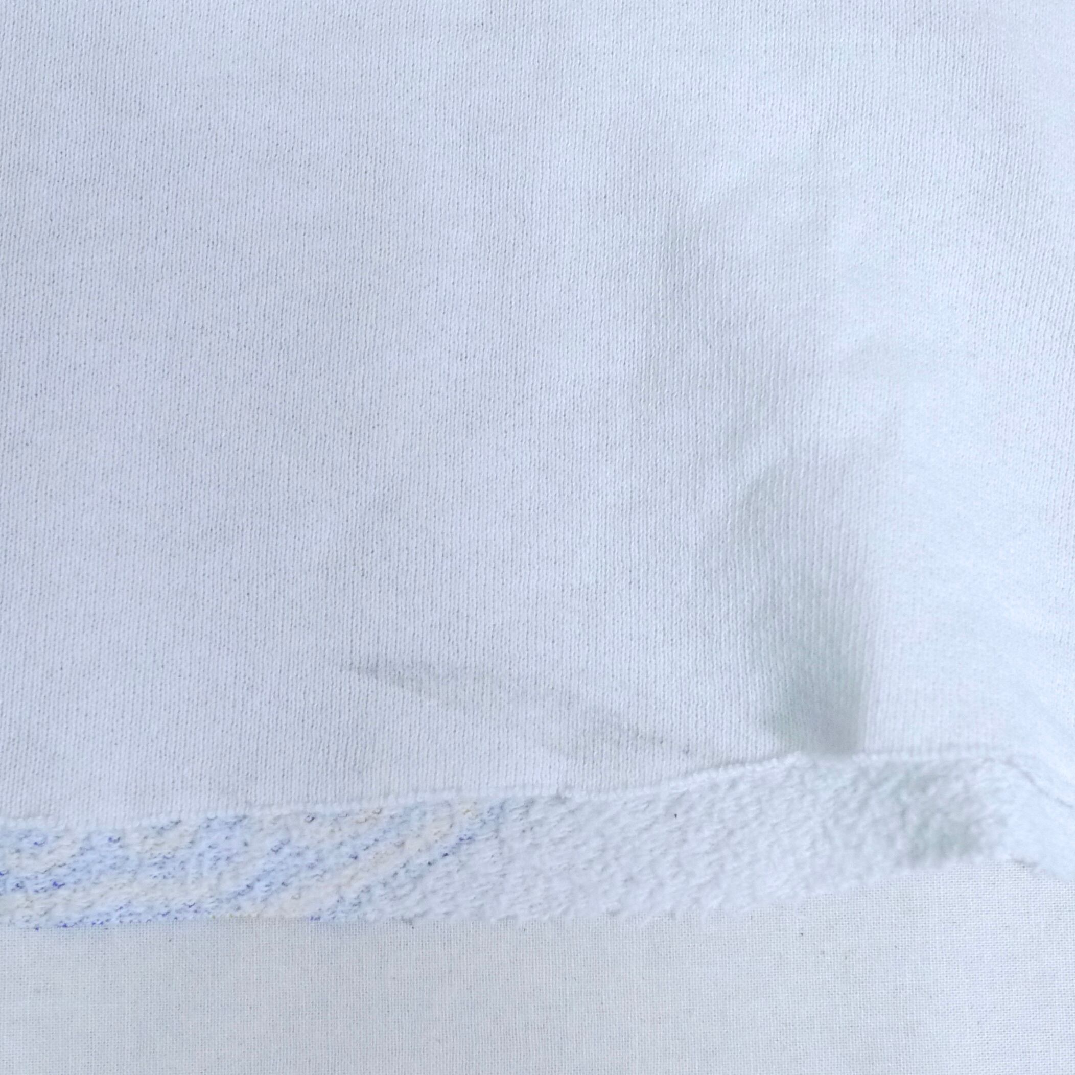 状態は、裾のリブがカットオフされています。背中に糸抜け。プリント部分や両袖を中心に全体的に所々に細かな汚れ。その他、経年による使用感はありますが、着用は可能です。アジとして捉えていただける方にお願いします。
