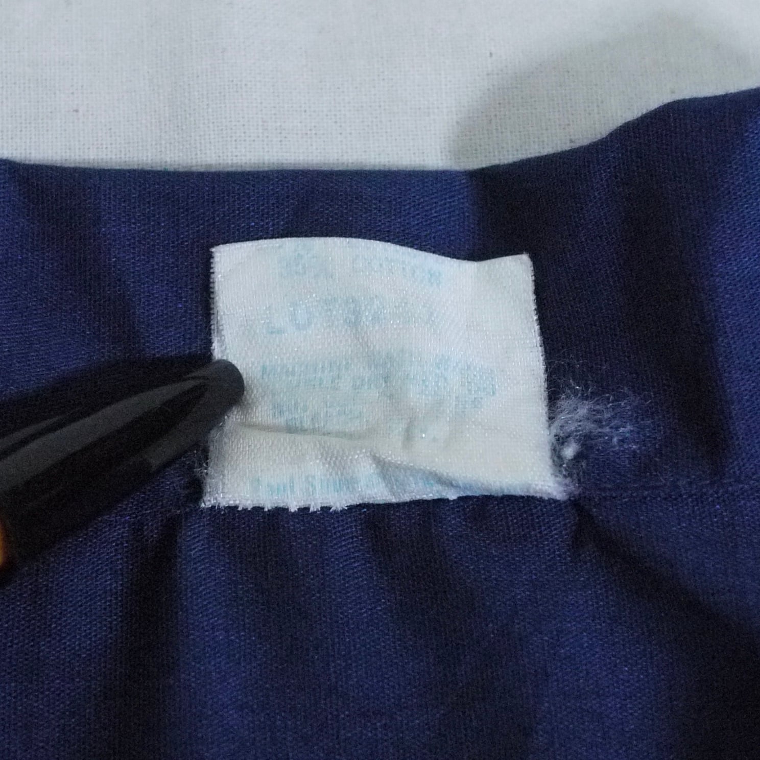 擦れて読み取りづらいですが、恐らくポリエステル65%、コットン35%。