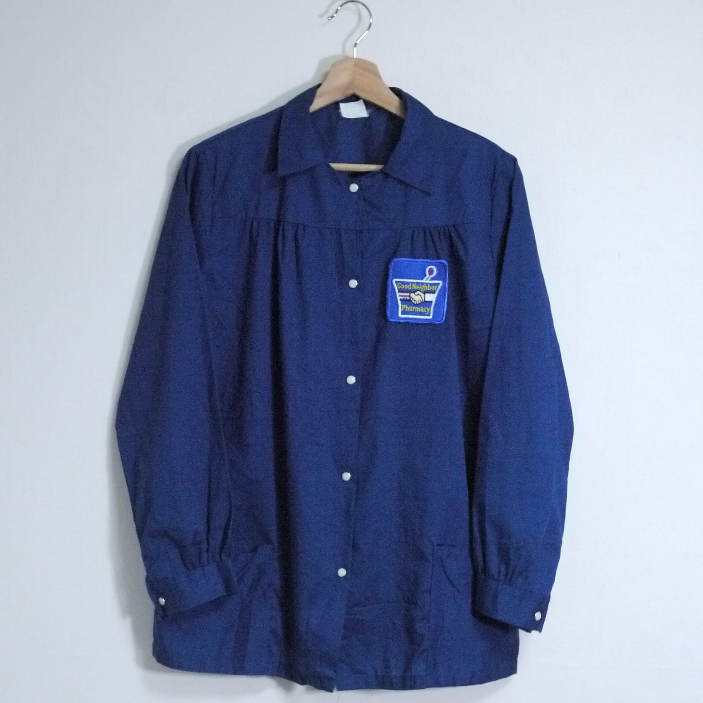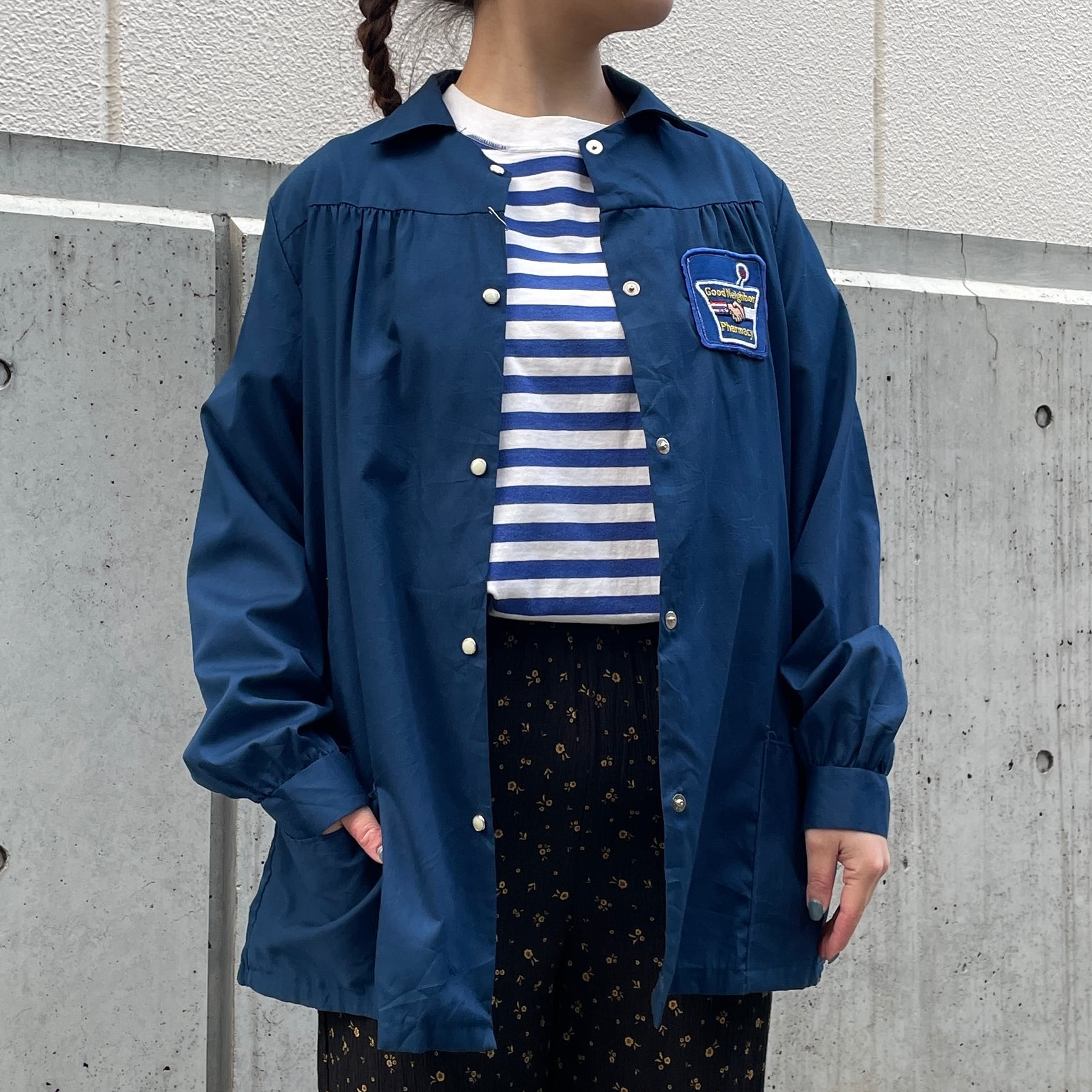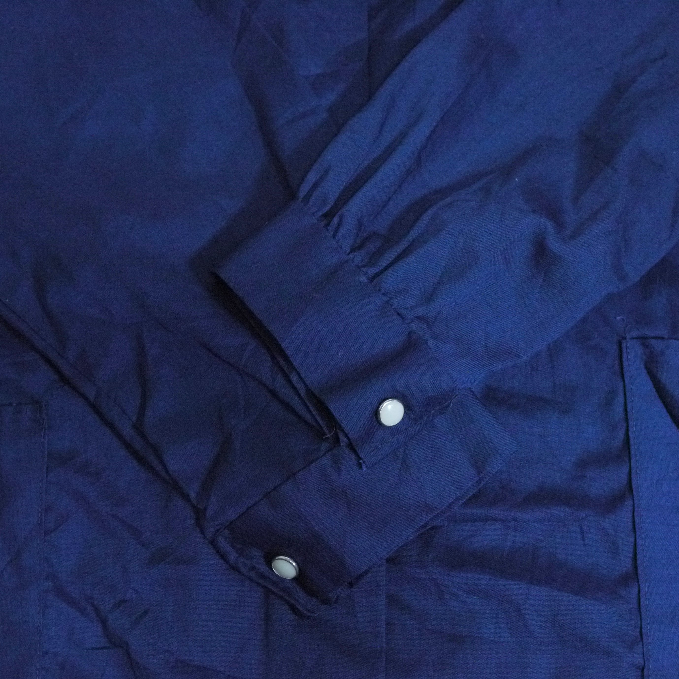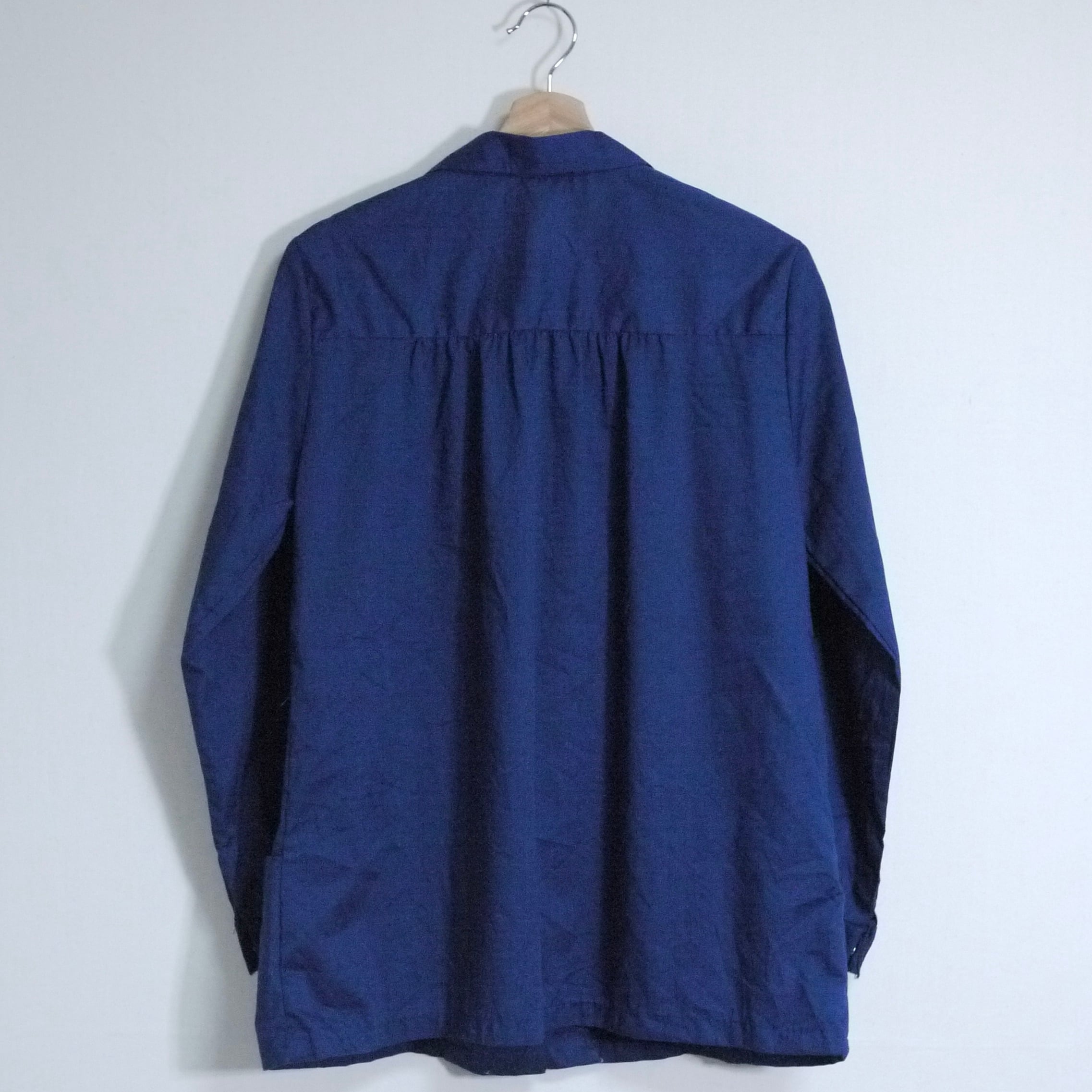 ネイビーカラーの長袖シャツ。