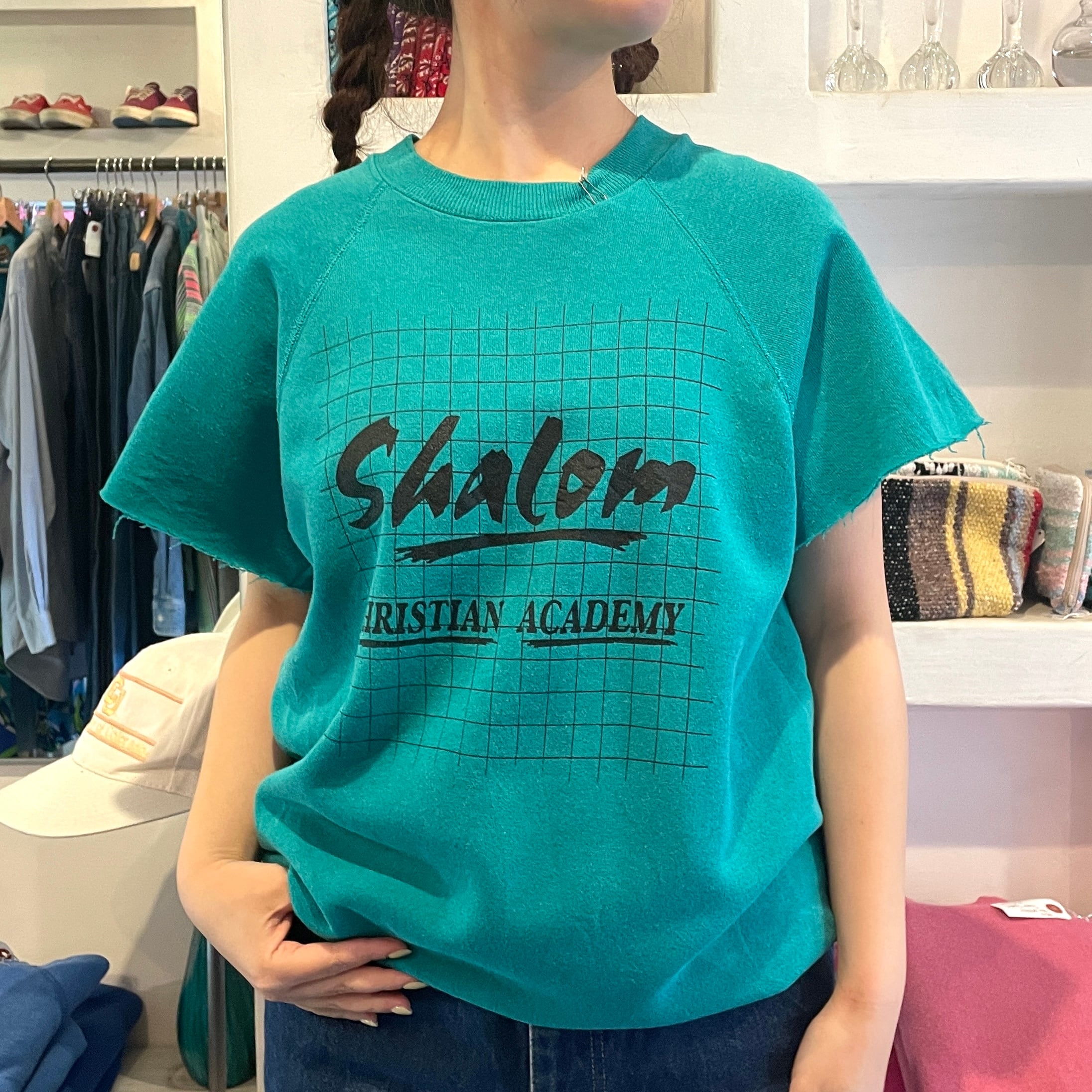 グリーン系カラーのカットオフスウェット。