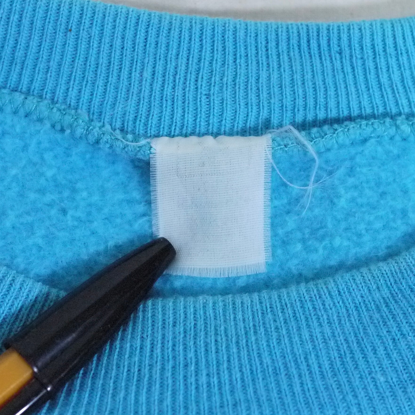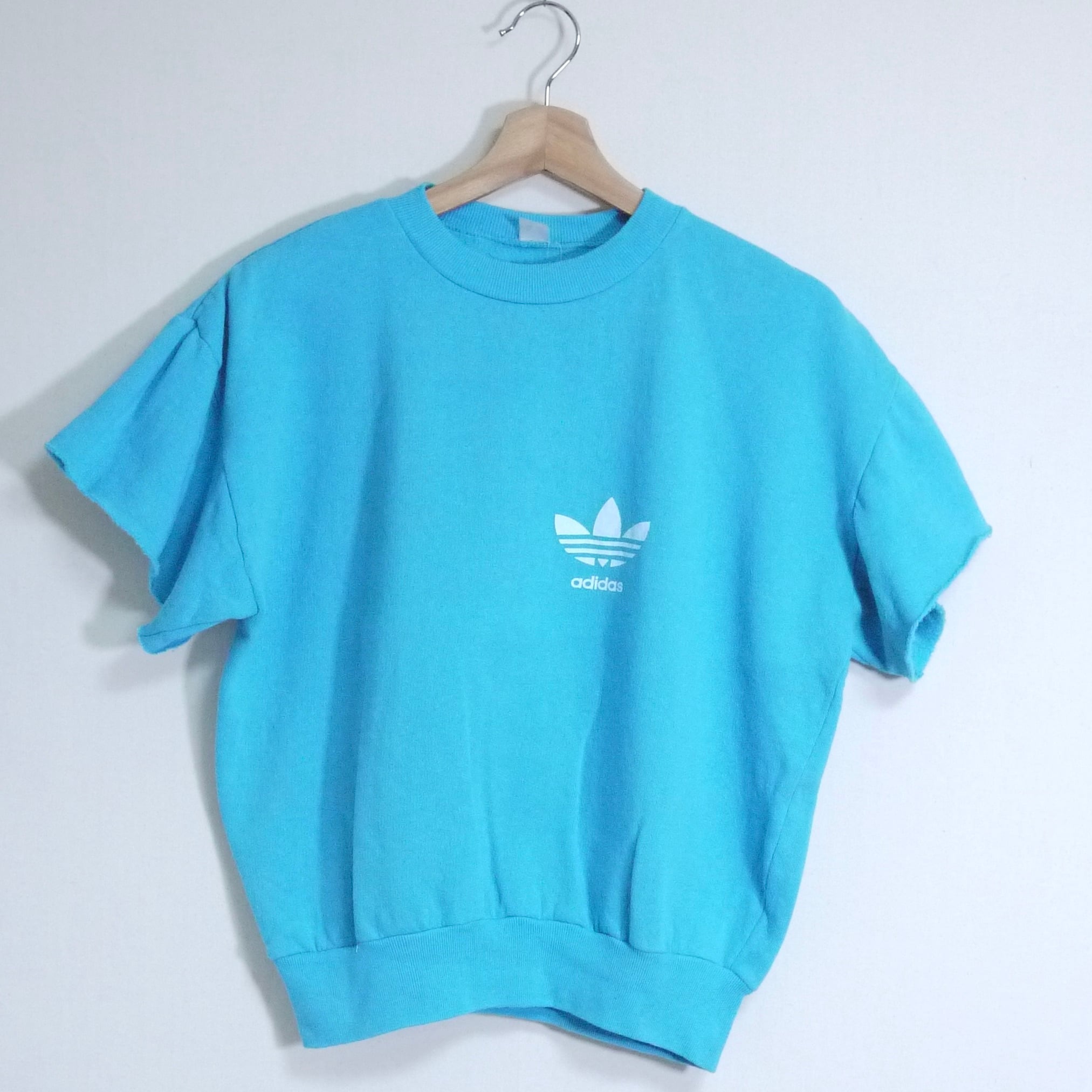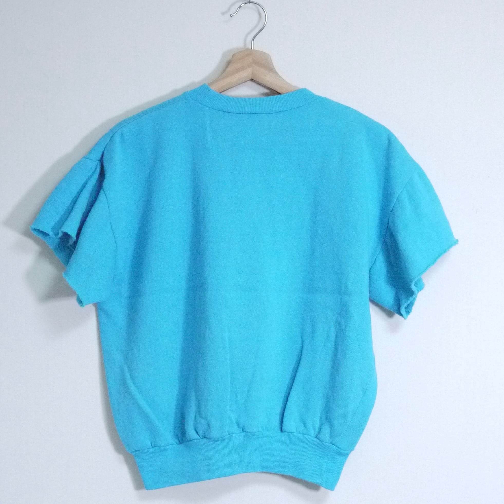ライトブルーカラーのカットオフスウェット。