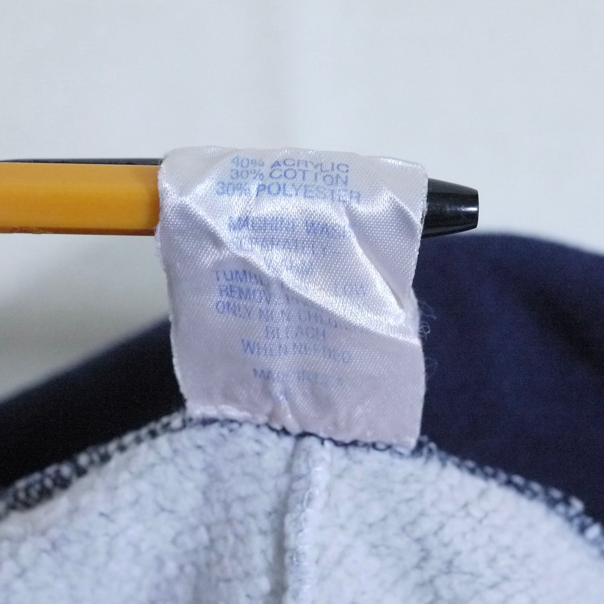 アメリカ製。アクリル40%、コットン30%、ポリエステル30%。