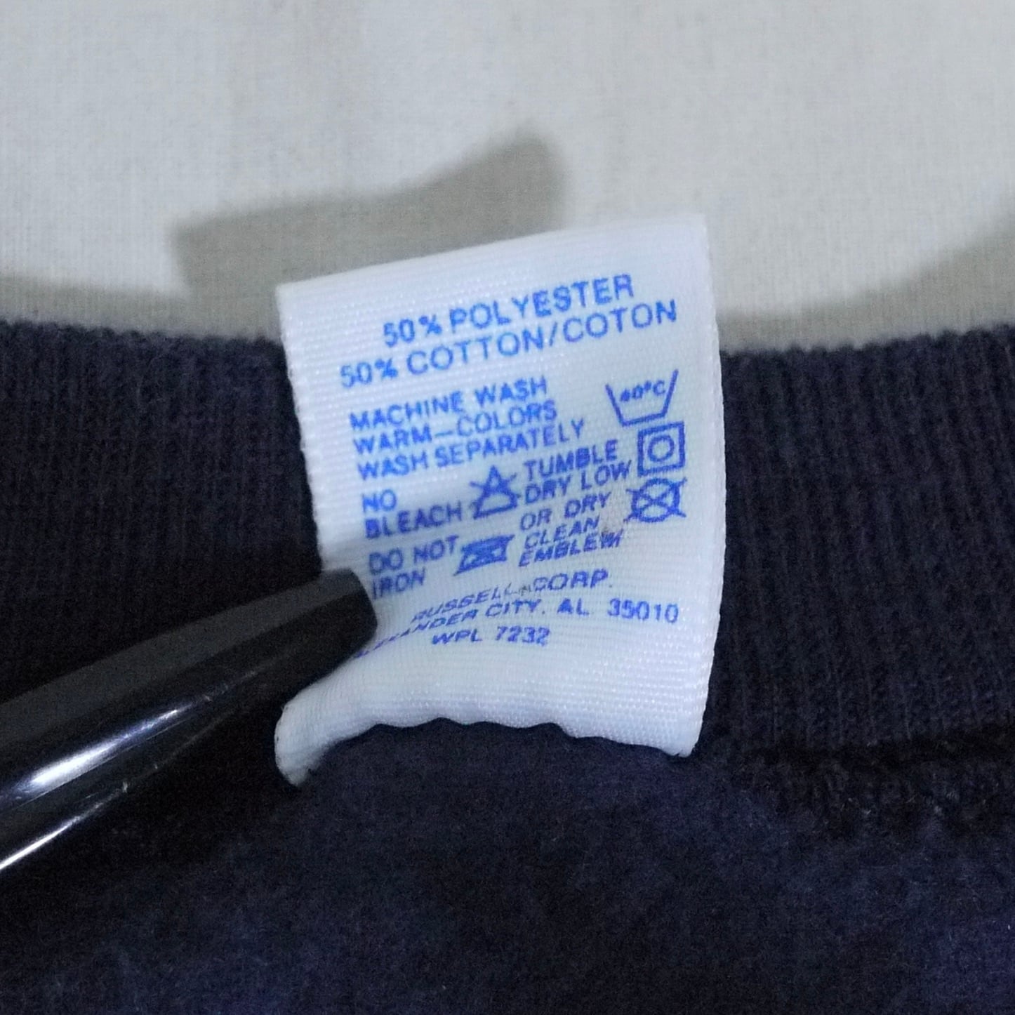 アメリカ製。ポリエステル50%、コットン50%。