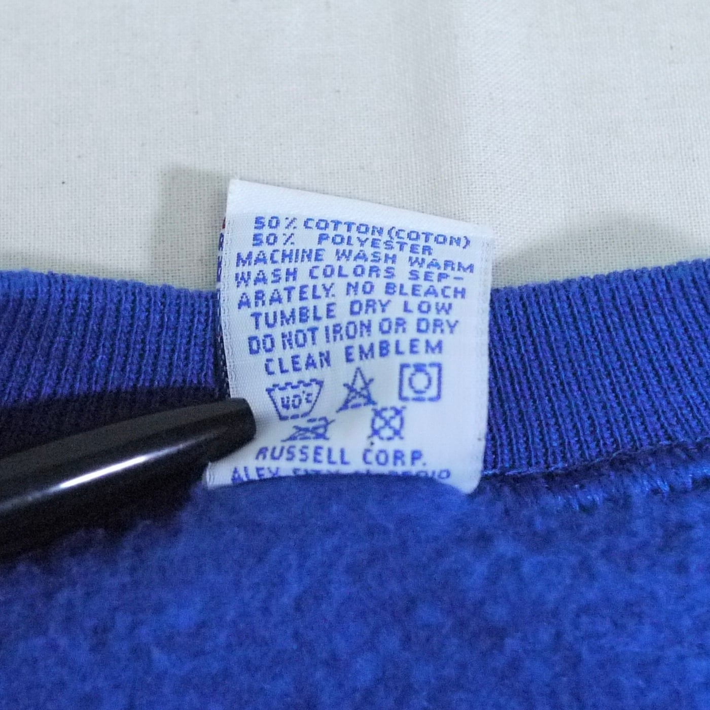 アメリカ製。ポリエステル50%、コットン50%。